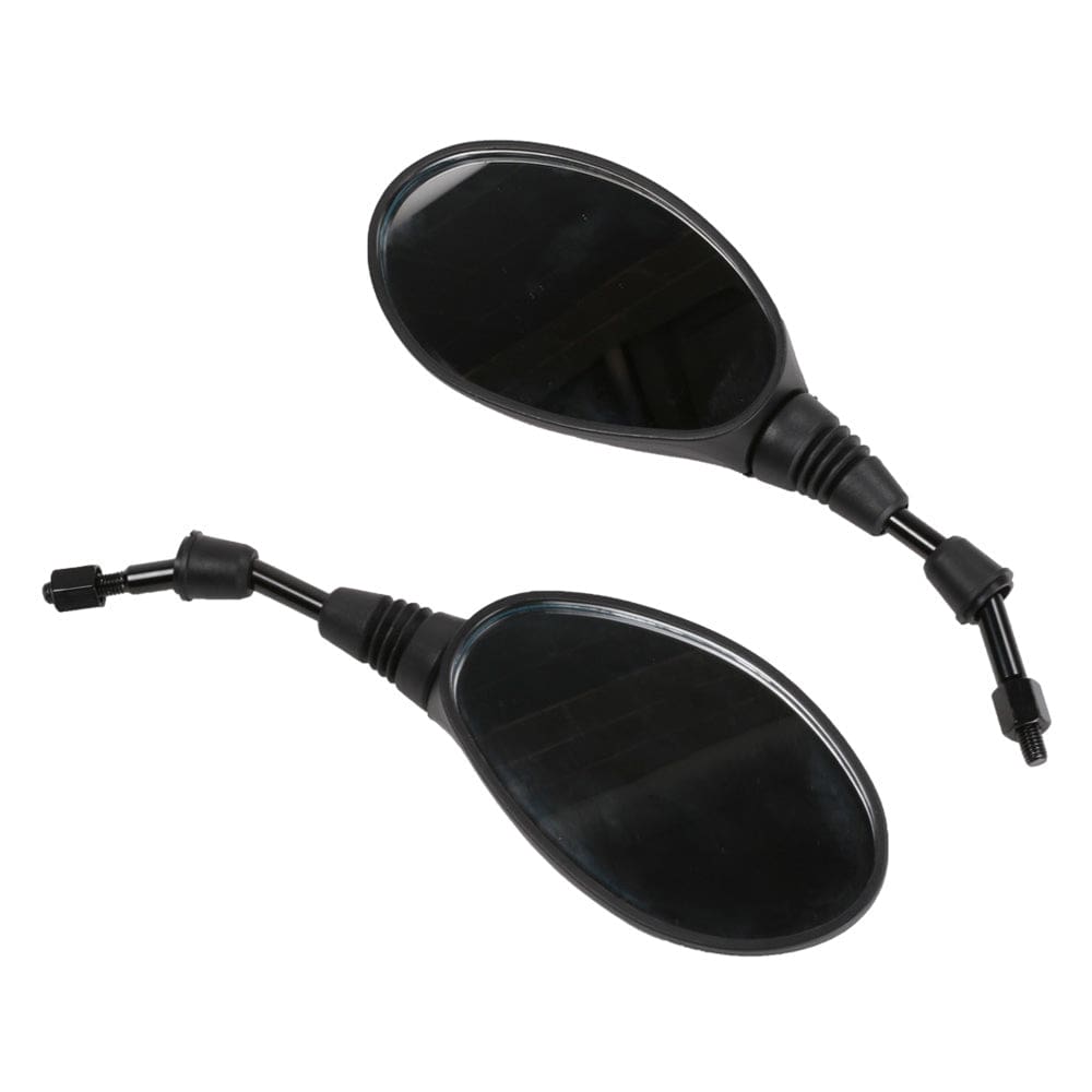 DESCRIPTION: These OEM standard mirrors fit many GY6 and 139QMB scooters. The set includes two mirrors, but they do not have the left-hand thread (hence the standard). Original Parts For Scooters SKU 108-41-Bk and 108-43You can also purchase this part through your local Genuine dealer.Specifications: Left-hand mirror Right-hand mirror Thread: 8mm standard (no left-hand thread) Mounting hardware Rubber Mirror Stem covers Compatibility:139QMB-based 50cc / 80cc engines with the following engine codes: 139QMA 139QMB 1P39QMB 1P39QMA-2 YN139QMB JJ1P39QMB 139FMA-2 BD1P39QMB BN139QMB 147QMD Other QMA models Other QMB models 157QMJ-based 125cc / 150cc / 169cc engines with the following engine codes: 157QMJ 161QMK 152QMI 1P61QMK YN1P57QMJ 1P52FMI 154FMI JJ157QMJ 1P57QMJ BN157QMJ BN161QMK-A Other QMJ, QMK, and QMI models Don’t see your engine listed? If the engine code includes QM or FM, this product is compatible with your vehicle.About Blue Line: Blue Line offers OEM equivalent replacement parts for on-road scooters. Blue Line parts are a direct-fit replacement when OEM parts are unavailable or overly expensive for your scooter. Since 2018, Blue Line has provided quality parts at great prices.