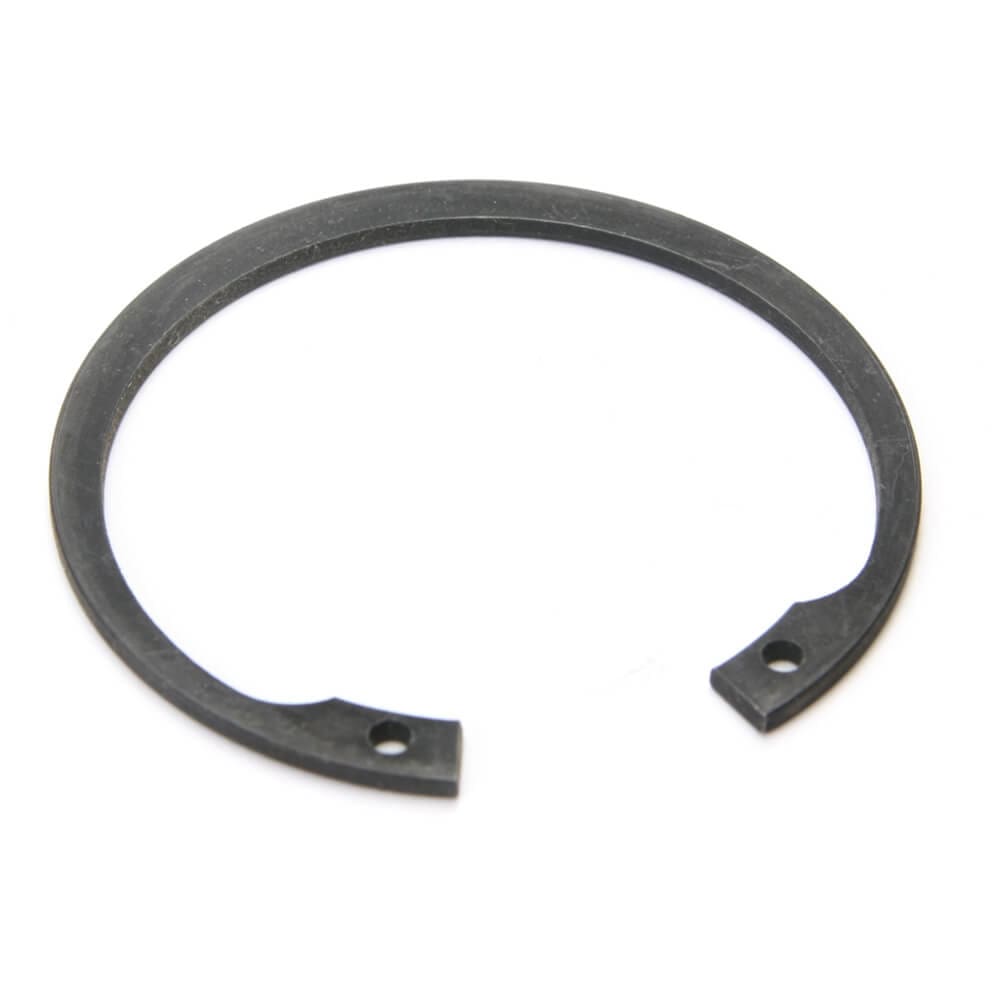 DESCRIPTION: A circlip or snap ring is a type of fastener consisting of a semi-flexible metal ring with open ends which can be snapped into place, into a machined groove on a dowel pin or other part to permit rotation but to prevent lateral movement. This one is used to hold the large oil seal in place.