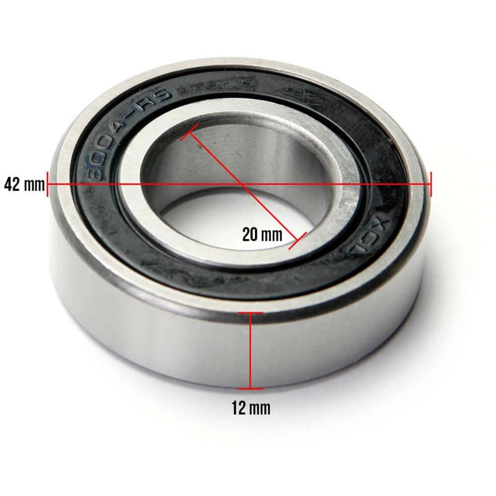 DESCRIPTION: This 6004 crankcase bearing replaces the stock equipment on GY6 Chinese scooter engines. Original Parts For Scooters SKU 105-46Specifications: Inner Diameter: 20mm Outer Diameter: 42mm Width: 12mm Compatibility:157QMJ-based 125cc / 150cc / 169cc engines with the following engine codes: 157QMJ 161QMK 152QMI 1P61QMK YN1P57QMJ 1P52FMI 154FMI JJ157QMJ 1P57QMJ BN157QMJ BN161QMK-A Other QMJ, QMK, and QMI models Don’t see your engine listed? If the engine code includes QM or FM, this product is compatible with your vehicle.nnSPECIFICATIONS: Inner Diameter: 20mm Outer Diameter: 42mm Width: 12mmnnCOMPATIBILITY: 157QMJ-based 125cc / 150cc / 169cc engines with the following engine codes: 157QMJ 161QMK 152QMI 1P61QMK YN1P57QMJ 1P52FMI 154FMI JJ157QMJ 1P57QMJ BN157QMJ BN161QMK-A Other QMJ, QMK, and QMI models Don’t see your engine listed? If the engine code includes “QM” or “FM”, this product is compatible with your vehicle.nn157QMJ ENGINES: 157QMJ-based 125cc / 150cc / 169cc engines with the following engine codes: 157QMJ 161QMK 152QMI 1P61QMK YN1P57QMJ 1P52FMI 154FMI JJ157QMJ 1P57QMJ BN157QMJ BN161QMK-A Other QMJ, QMK, and QMI models Don’t see your engine listed? If the engine code includes “QM” or “FM”, this product is compatible with your vehicle.nnMODEL FITMENTS: Amstar, Amigo, Ascend, Baotian, Bashan, Blade, Boom, Chicago Scooter Company, Dongfang, Roketa, Baotian, Bashan, BMS, Cool Sports, E Ton, Fly Wing, Eagle, Fly, Italica, Riya, Ice Bear, Jackel, Jet Moto, JCL, Taotao, Peace, JM Star, Jonway, Kazuma, Keeway, KMD, Kymco, Lance, Lifan, Linhai, Loncin, Longbo, Fuxin, Jiajue, Tao Tao, Tao Motors, Trailmaster, Maxtrade, Meitien, Motofino, Motorino, NST, Panterra, Panther, Qlink, Yiben, Red Streak, Redcat, Roketa, Schwinn, Strada, SYM, Tank, Terminator ,Tomberlin, TNG, United Motors, Vento, Vitacci, Wildfire, Wolf, X-Treme, X-Pro, Yongfu, ZNEN, Zhongneng , Zhilong, Geely, Wangye, ZH and more Manufactured by: Taizhou Zhongneng Motorcycle Co.; Jiangsu Zhongneng Motorcycle Co.; Jiangsu Meijunte Technology Co.; Taizhou Qianxin Vehicle Co.; Ningbo Dongfang Lingyun Vehicle Made Co.; Taizhou Zhilong Technology Co.; Zhejiang Jiajue Motorcycle Manufacturing Co.; Zhejiang Gelly Ming Industrial Co.; Taizhou City Senglong Motorcycle Manufacture Co.; Jiangsu Sacin Motorcycle Co.; Jiangsu Linhai Power Machinery Group Co.; Zheijiang TaoTao Vehicles Co.; Zhejiang Senling Motorcycle Co.; Sanmen County Yongfu Machine Co; Taizhou Jiaojiang Zhiwei Motorcycle Manufacture Co.; Huzhou Daixi Zhenhua Technology Trade Co.; Taizhou Zhongneng Motorcycle Co.; Zhejiang Riya Motorcycle Co.; Ningbo Longjia Motorcycle Co.; Taizhou Zhongneng Motorcycle Co.; and more