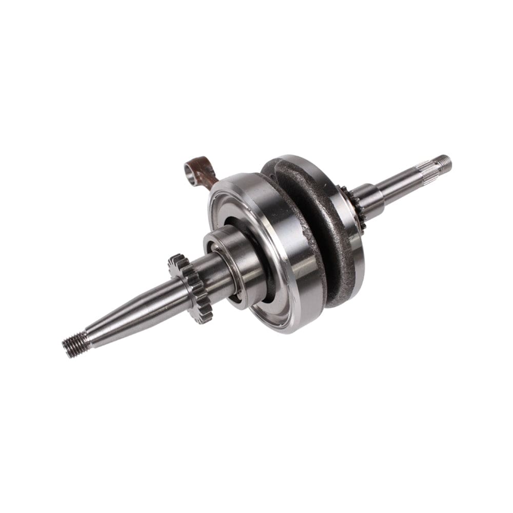 DESCRIPTION: This OEM replacement crankshaft assembly fits 139QMB engines with 16 tooth oil pump drives. Main bearings are installed.Original Parts For Scooters SKU 151-19Specifications: Stroke: 41.4mm Overall Length: 247mm Thread Size (tapered side): M10x1.25 Thread Size (spline side): M12x1.25 Bearing Outer Diameter (tapered side): 42mm Bearing Outer Diameter (spline side): 47mm Number of Splines: 26 Number of Teeth (oil pump drive gear): 16 139QMB-based 50cc / 80cc engines with the following engine codes: 139QMA 139QMB 1P39QMB 1P39QMA-2 YN139QMB JJ1P39QMB 139FMA-2 BD1P39QMB BN139QMB 147QMD Other QMA models Other QMB models Don’t see your engine listed? If the engine code includes QM or FM, this product is compatible with your vehicle.nnSPECIFICATIONS: Stroke: 41.4mm Overall Length: 247mm Thread Size (tapered side): M10x1.25 Thread Size (spline side): M12x1.25 Bearing Outer Diameter (tapered side): 42mm Bearing Outer Diameter (spline side): 47mm Number of Splines: 26 Number of Teeth (oil pump drive gear): 16 139QMB-based 50cc / 80cc engines with the following engine codes: 139QMA 139QMB 1P39QMB 1P39QMA-2 YN139QMB JJ1P39QMB 139FMA-2 BD1P39QMB BN139QMB 147QMD Other QMA models Other QMB models Don’t see your engine listed? If the engine code includes “QM” or “FM”, this product is compatible with your vehicle.nn139QMB ENGINES: 139QMB-based 50cc / 80cc engines with the following engine codes: 139QMA 139QMB 1P39QMB 1P39QMA-2 YN139QMB JJ1P39QMB 139FMA-2 BD1P39QMB BN139QMB 147QMD Other QMA models Other QMB models Don’t see your engine listed? If the engine code includes “QM” or “FM”, this product is compatible with your vehicle.nnMODEL FITMENTS: Model Year