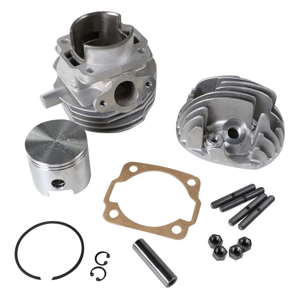 DESCRIPTION: Pinasco brand cylinder kit to raise your Vespa 50 to 100cc! We recommend careful tuning . Replacement rings can be found here. Replacement pistons can be found here. ***PLEASE NOTE*** Performance upgrades are considered racing parts and are not covered by warranty. There are too many variables involved with user-installed parts, and pushing the limits of your engine tends to wear parts faster. Use at your own risk! Not legal for use in California on pollution controlled vehicles. Check local laws before installing. This product is not intended for use on public roads or land.