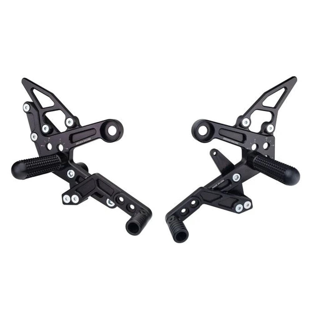 DESCRIPTION: Driven Racing TT Rearsets for the Honda Grom (2014-2016).Features include high grade hardware, adjustable folding toe pegs, choose from standard or reverse shift with no modifications, 4 different mounting positions up to 18mm up and 18mm back from new “0” position and new lightweight TT design!Made in USA.