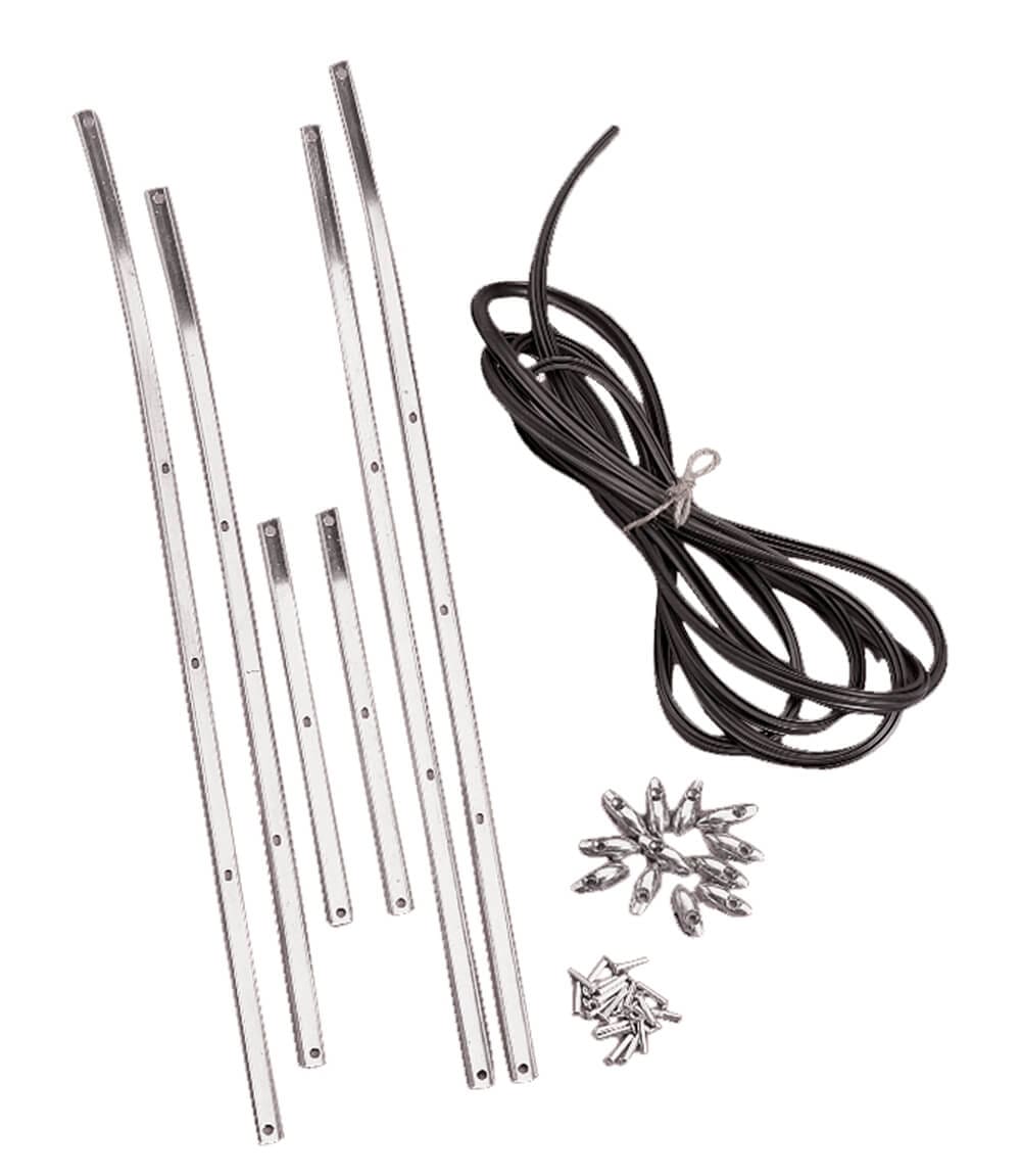 DESCRIPTION: Get everything you need to do the job right! Floor rail kit for your small frame Vespa. Includes rails, rubber, endcaps and endcap rivets. Fits V5A, V5B, V9A, V9B, and VMA. Part FRKSF