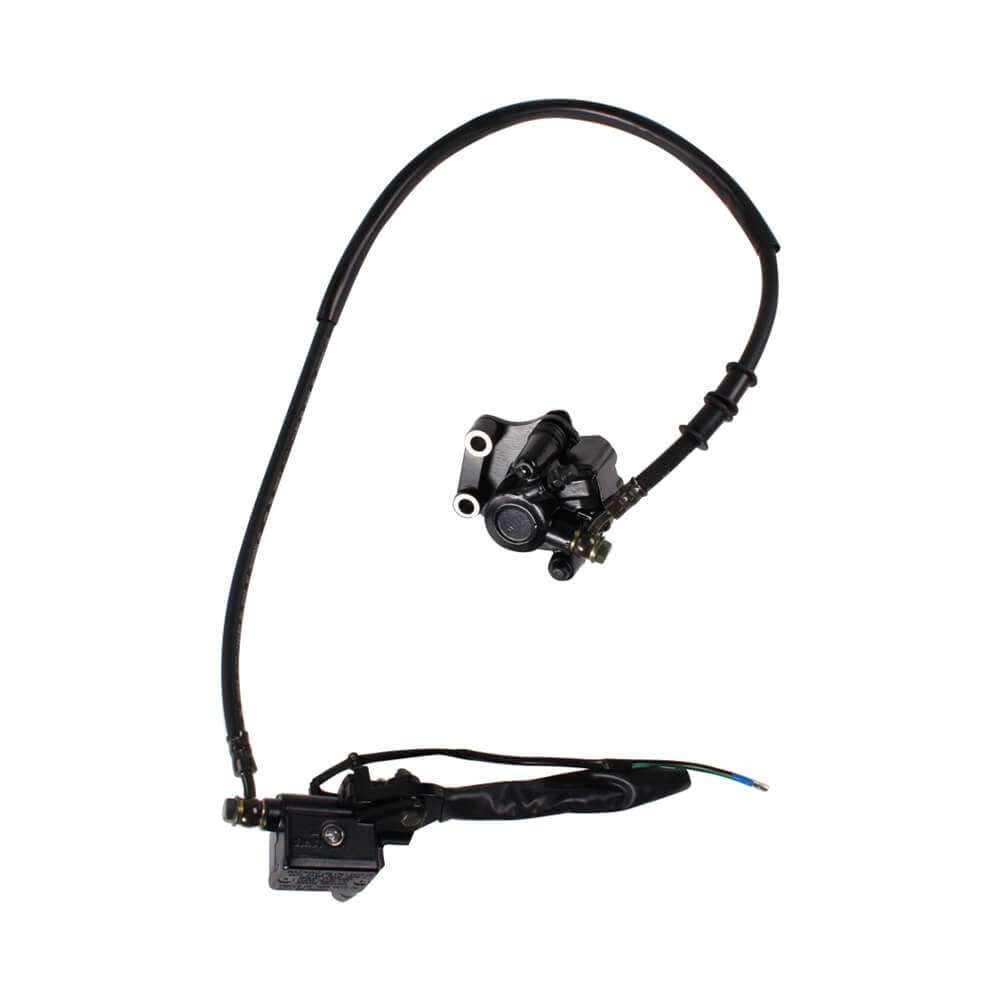 DESCRIPTION: This front disc assembly includes the master cylinder, lever, hose, banjo bolts, brake switch, caliper and pads. Does not include rotor. OEM on the CSC go., will work on many other Chinese scooters.