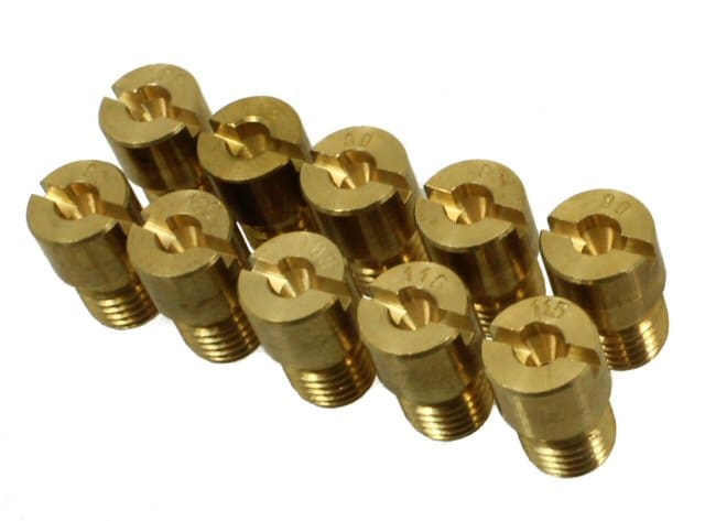 Minarelli Main Jet Kit for 50cc/90cc 2-stroke Mikuni Style carburetors includes a size range from #70 – #115. Available in 10 piece or 50 piece set. Note: The name Mikuni is used for description purposes only. These are not original Mikuni made jets, simply a high quality replacement.