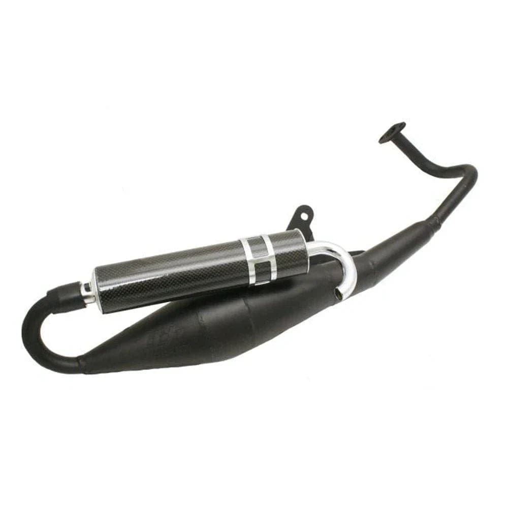 DESCRIPTION: Naraku 50cc QMB139 4-stroke Black Crossover Exhaust with Carbon Fiber Silencer.The crossover exhaust is tailored to the stock QMB139 engine and provides a top end performance boost. Available in a black finish with a real black carbon silencer for maximum stealthiness! Please Note: This exhaust is designed to conform to European Road Standards. Removing the manifold restrictor leads to a significant performance improvement. Head Pipe Bolt Hole Spacing: 50mm Head Pipe Inner Diameter: 20mm Includes Removable Silencer Does Not Include Mounting Bolts QMB139 50cc/49cc