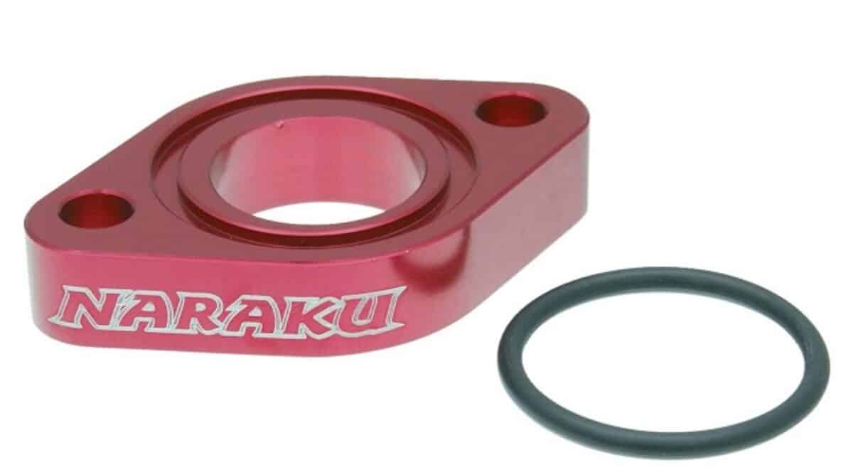 Naraku Performance 24mm Intake Manifold Spacer for QMB139. This spacer is designed to optimize flow from a 24mm intake to the 21mm inlet ports on the Naraku head in the 52.4mm big bore kit. The o-ring side contacts the head surface regardless of orientation of the Naraku logo. Please see our Warranty & Returns Policy. *It is possible to install this spacer 180 degrees reversed. If it is installed incorrectly it will cover the inlet port and restrict flow.
