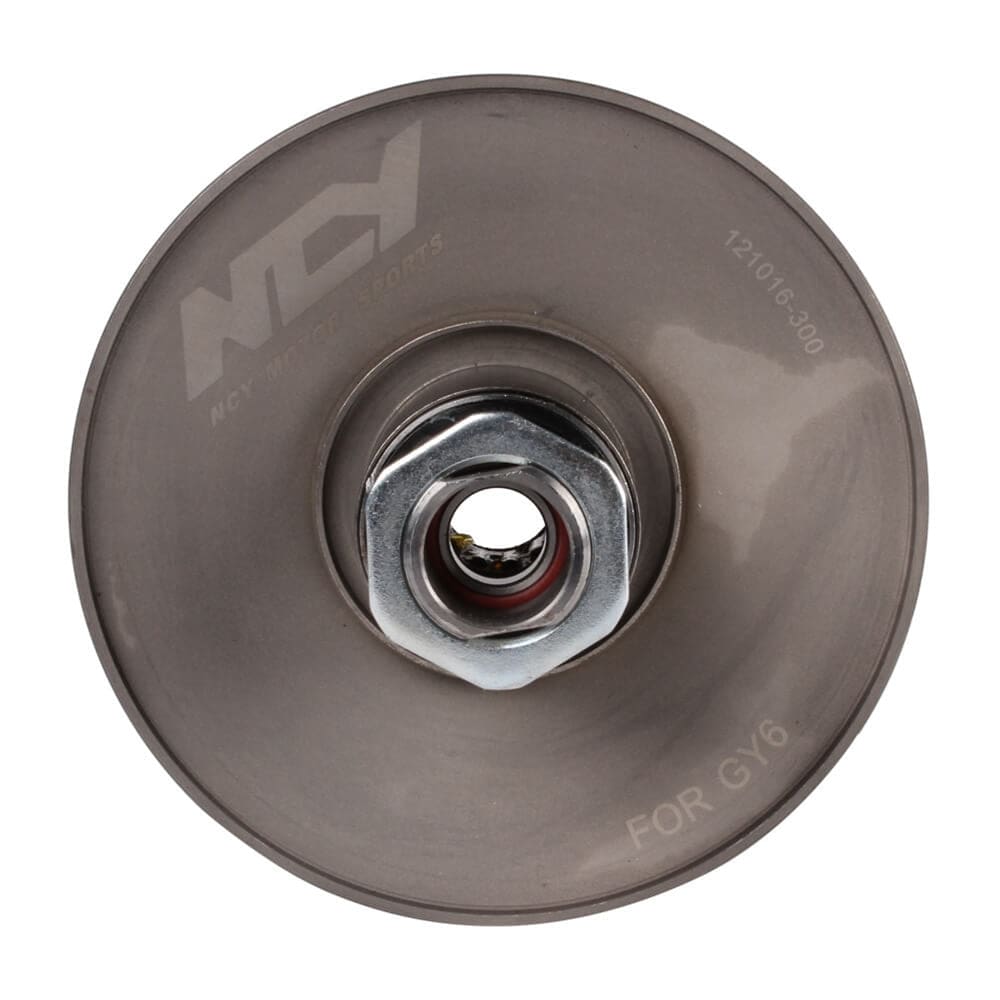 DESCRIPTION: This adjustable Secondary Sliding Sheave Assembly from NCY will give your GY6 125/150cc or Buddy 4-stroke 125, 150 or 170i bike quicker takeoff and a higher top speed. By manipulating the belt contact area on the pulley, the secondary sliding sheave changes the gear ratio on the fly, thereby increasing power delivery.Compatibility:Genuine Buddy 125Genuine Buddy 150Genuine Buddy 170iChinese GY6 125/15cc enginesThis product will also fit 157QMJ-based 125cc / 150cc / 169cc engines with the following engine codes:157QMJ161QMK152QMI1P61QMKYN1P57QMJ1P52FMI154FMIJJ157QMJ1P57QMJBN157QMJBN161QMK-AOther QMJ, QMK, and QMI modelsDon’t see your engine listed? If the engine code includes “QM” or “FM”, this product is compatible with your vehicle.About NCY:NCY is the aftermarket performance parts leader for most popular scooter brands including Honda, Yamaha, Genuine, Vespa, SYM, Lance, KYMCO, and GY6 / QMB powered scooters. Made in Taiwan with strict quality standards since 1997, NCY is ISO 9001 certified.Made in Taiwan.This product is intended for off-road use only.This product is not intended for use on public roads or land.*Performance upgrades are considered racing parts and are not covered by warranty.