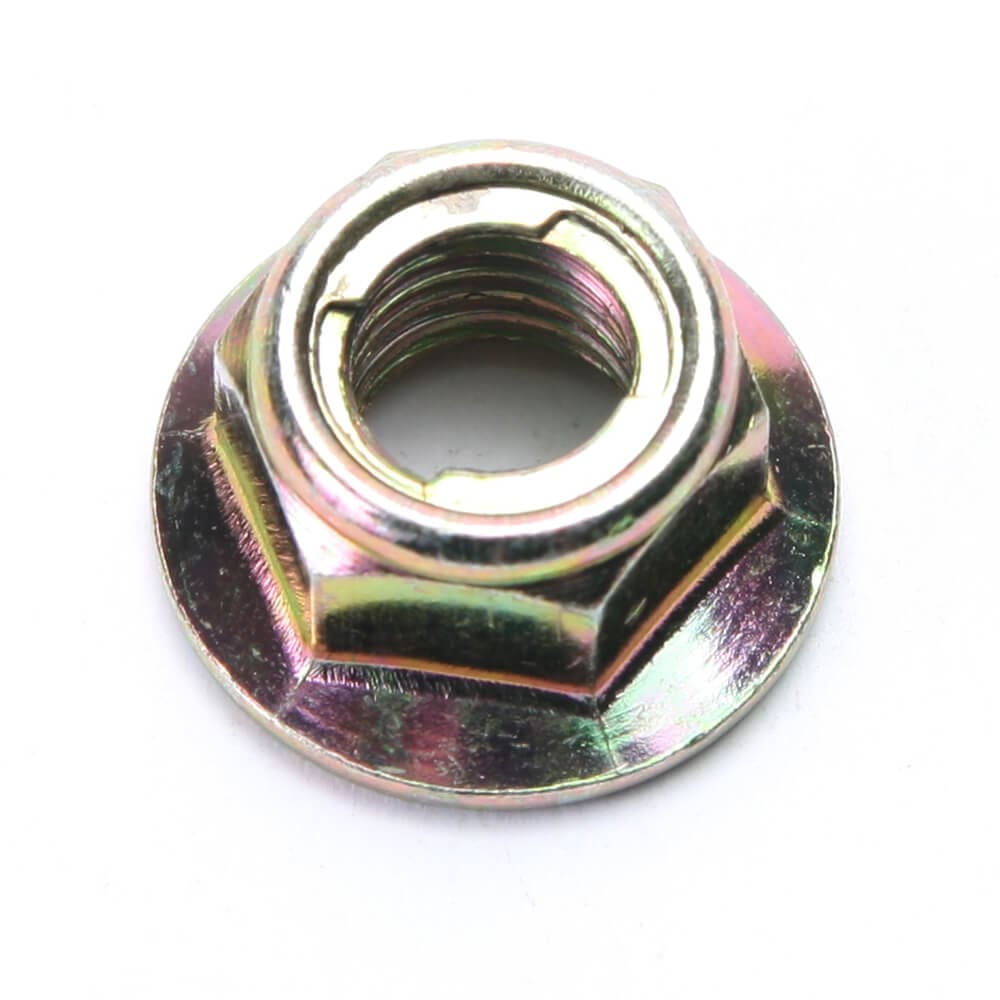 DESCRIPTION: M8 nut for brake shoe anchor pin on GY6 125-150 cc Chinese scooter engines. Works with 1100-1182 and 1100-1183 brake shoe anchor pin and o-ring.