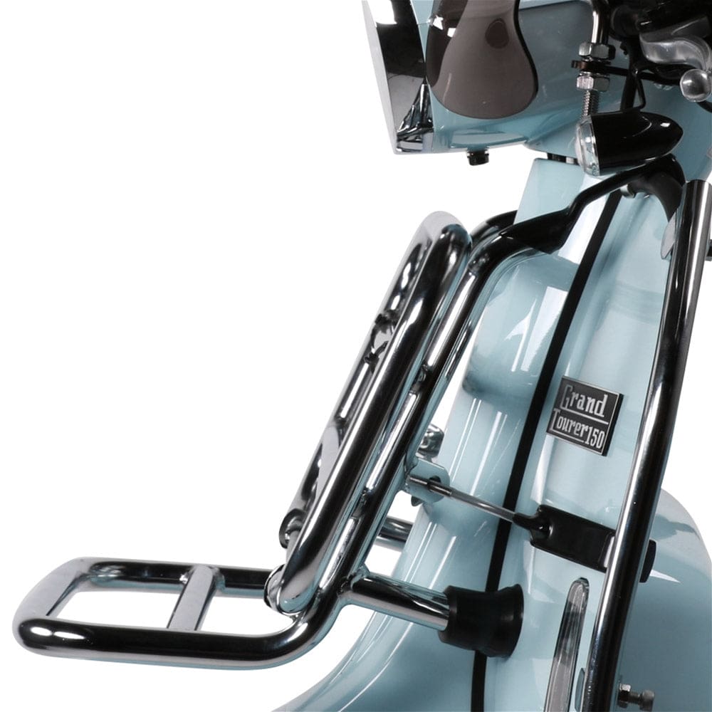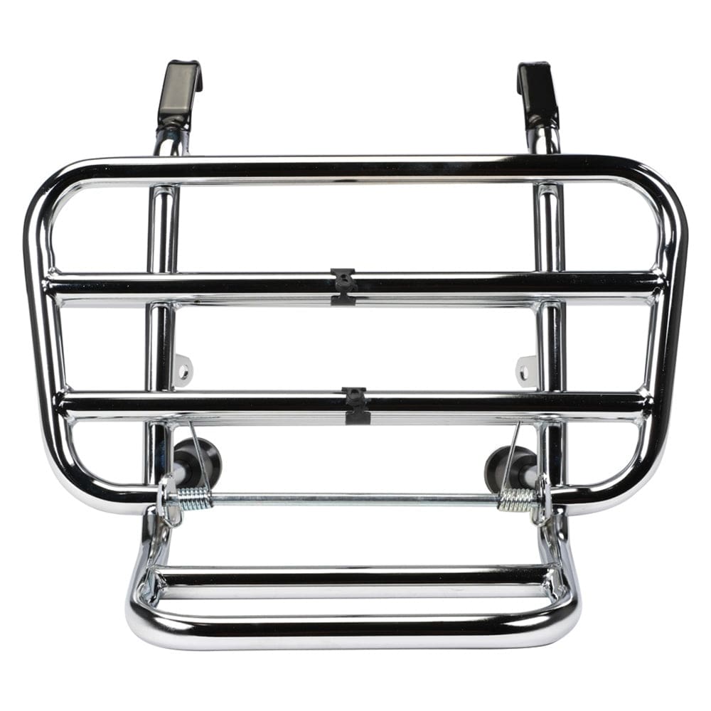 DESCRIPTION: The Prima Folding Front Rack in chrome makes a great place for a roll bag or properly-bungeed back pack on your Royal Alloy GT150 or GP300S. It’s also great for mounting more and more mirrors for great mod looks and greater visibility.Specifications:Chrome finishRack folds up when not in useDimensions: 16″H x 16″W x 9.5″HCompatibility:Royal Alloy GT150Royal Alloy GP300SAbout Prima:Prima is the industry leader in premium scooter accessories, service parts and scooterist protective apparel. Prima brand products are designed direct-fit for all popular scooter brands including Honda, Yamaha, Genuine, Vespa, SYM, Lance, KYMCO, Royal Alloy and GY6 / QMB powered scooters.