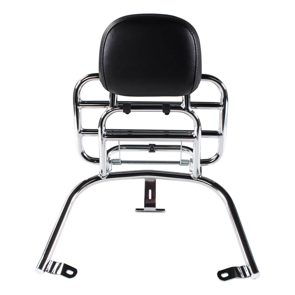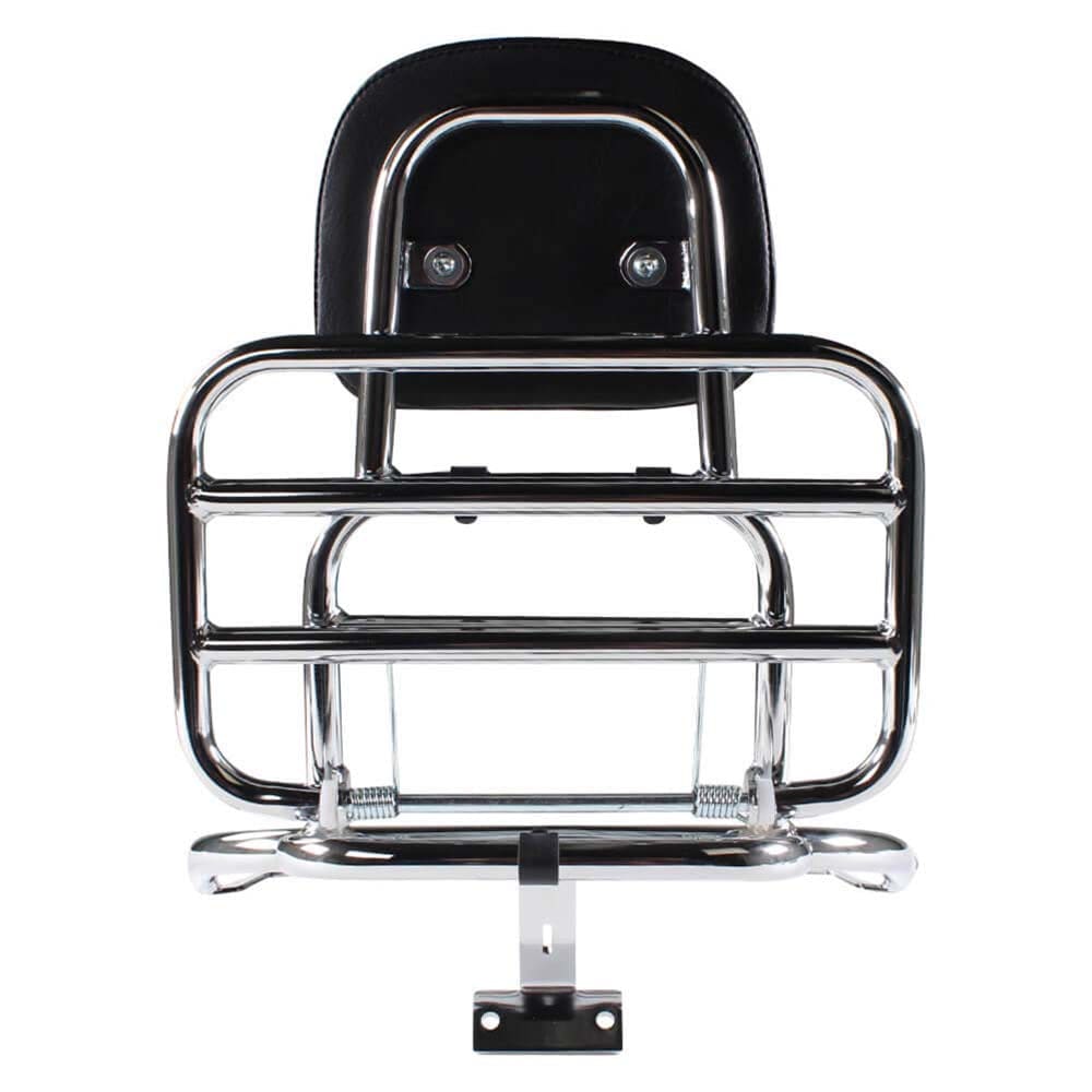 DESCRIPTION: The Prima Rear Rack and Backrest in chrome fits your Vespa LX 50, LX 150, or LXV, keeps your passenger comfortable, and still leaves enough room for you to mount aroll bagormilk cratefor added storage. It will not work with most topcases, including thePrima Round Rear BasketandK-Max Topcase(due to the way the topcases open).Specifications:Backrest and rear rack combinationChrome finish, also available inblackRack folds up when not in useOverall dimensions: 20″L x 16.5″W x 13″HReuses existing hardwareCompatibility:Vespa LX 50 (2006-2009)4-Stroke 2-ValveVespa LX 150 (2006-2009)Leader Motor (2-Valve)Vespa LXV (2007-2009)Leader Motor (2-Valve)About Prima:Prima is the industry leader in premium scooter accessories, service parts and scooterist protective apparel. Prima brand products are designed direct-fit for all popular scooter brands including Honda, Yamaha, Genuine, Vespa, SYM, Lance, KYMCO, Royal Alloy and GY6 / QMB powered scooters.