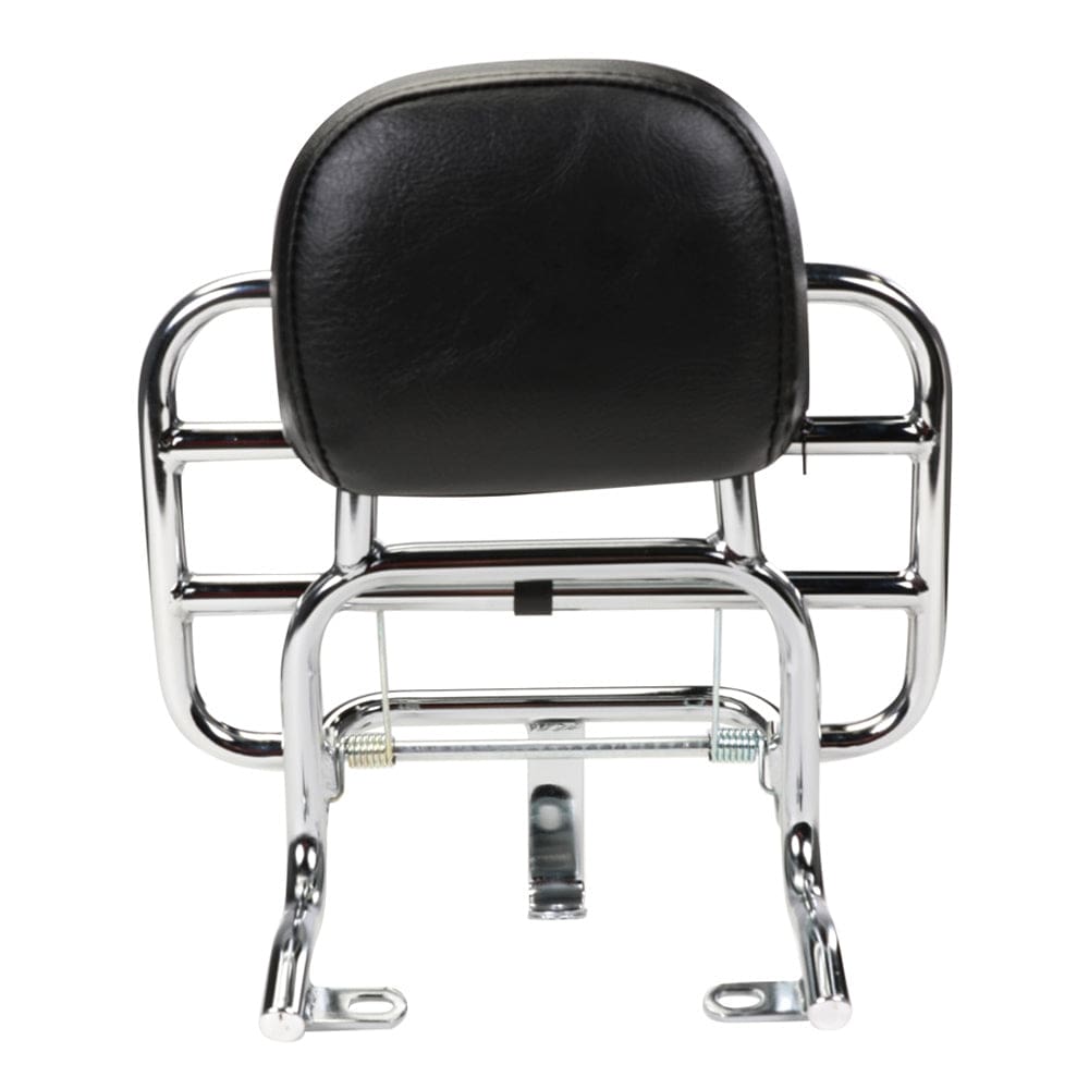 DESCRIPTION: The Prima Rear Rack and Backrest in chrome fits your Buddy Kick 125 scooter and keeps your passenger comfortable and your groceries in place. Want a little more storage? Mount a aroll bagormilk cratebut not a topcase (they don’t work with this rack/backrest combo due to the way the topcases open).Specifications:Backrest and rear rack combinationSprings allow the rack to fold up when not in useFits Genuine Buddy scootersReuses existing hardwareCompatibility:Genuine Buddy Kick 125 scootersAbout Prima:Prima is the industry leader in premium scooter accessories, service parts and scooterist protective apparel. Prima brand products are designed direct-fit for all popular scooter brands including Honda, Yamaha, Genuine, Vespa, SYM, Lance, KYMCO, Royal Alloy and GY6 / QMB powered scooters.