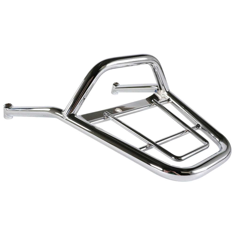 DESCRIPTION: This Prima Rear Rack in chrome fits all Genuine Buddy scooter models. Mounting hardware is included, allowing you to quickly and easily add this to your Buddy scooter using the existing frame supports.This rack is great for adding additional storage capacity with atopcase,roll bag,basket,picnic basketorcrate.Specifications:Rack measures 16″ x 12″ x 4″Mounting hardware includedAlso available inblack.Compatibility:Genuine Buddy 50Genuine Buddy 125Genuine Buddy 150Genuine Buddy 170iAbout Prima:Prima stands at the forefront of stylish, and reliable scooter accessories, service components, and protective gear for scooter enthusiasts. Products under the Prima brand are specifically engineered to fit seamlessly and color-match when appropriate with a wide range of well-known scooter manufacturers, such as Honda, Yamaha, Genuine, Vespa, SYM, Lance, KYMCO, Royal Alloy, and GY6/QMB powered scooters.Since its inception in 2006, Prima has consistently offered exceptional style, function, performance, and protection for both scooters and scooterists alike.Made in Taiwan.