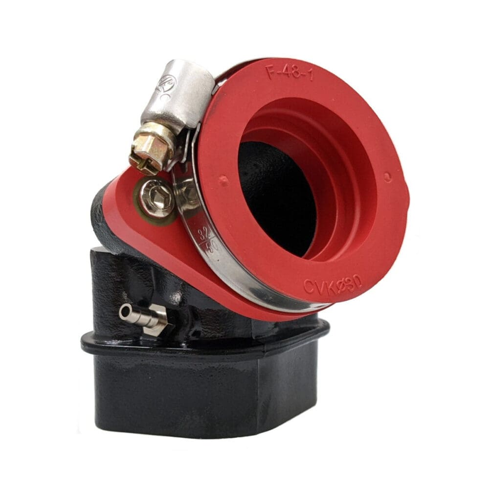 DESCRIPTION: RDR 30mm Performance Intake Manifold for 150cc and 125cc GY6 4-stroke QMJ152/157 QMI152/157 engines. This intake works with CVK carburetors from 24mm to 30mm or PWK carburetors up to 30mm! The extra tall base eliminates the need for the plastic intake spacer. Includes gasket.Bolt Hole Spacing: 45mmInner Diameter (carb side): 35mmInner Diameter (engine side): 27mm2 Vacuum PointsMade in Taiwan!GY6 QMI/QMJ 152/157