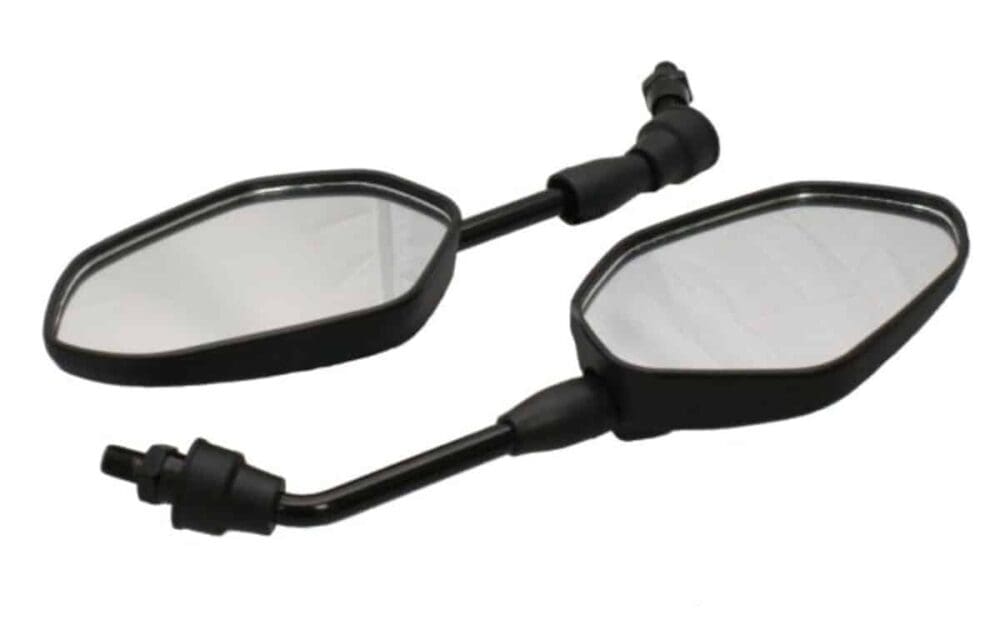 Adjustable Black Mirror Set With 8mm or 10mm Threaded Posts for Street Legal Full Size Scooters. Choose Size from The Drop Down Menu.nChoose Either Thread Size M8x1.25mm or M10x1.25mm From the Drop Down MenunRight-Hand Threadn SUPPORTED MODELS: Various unlisted makes/models