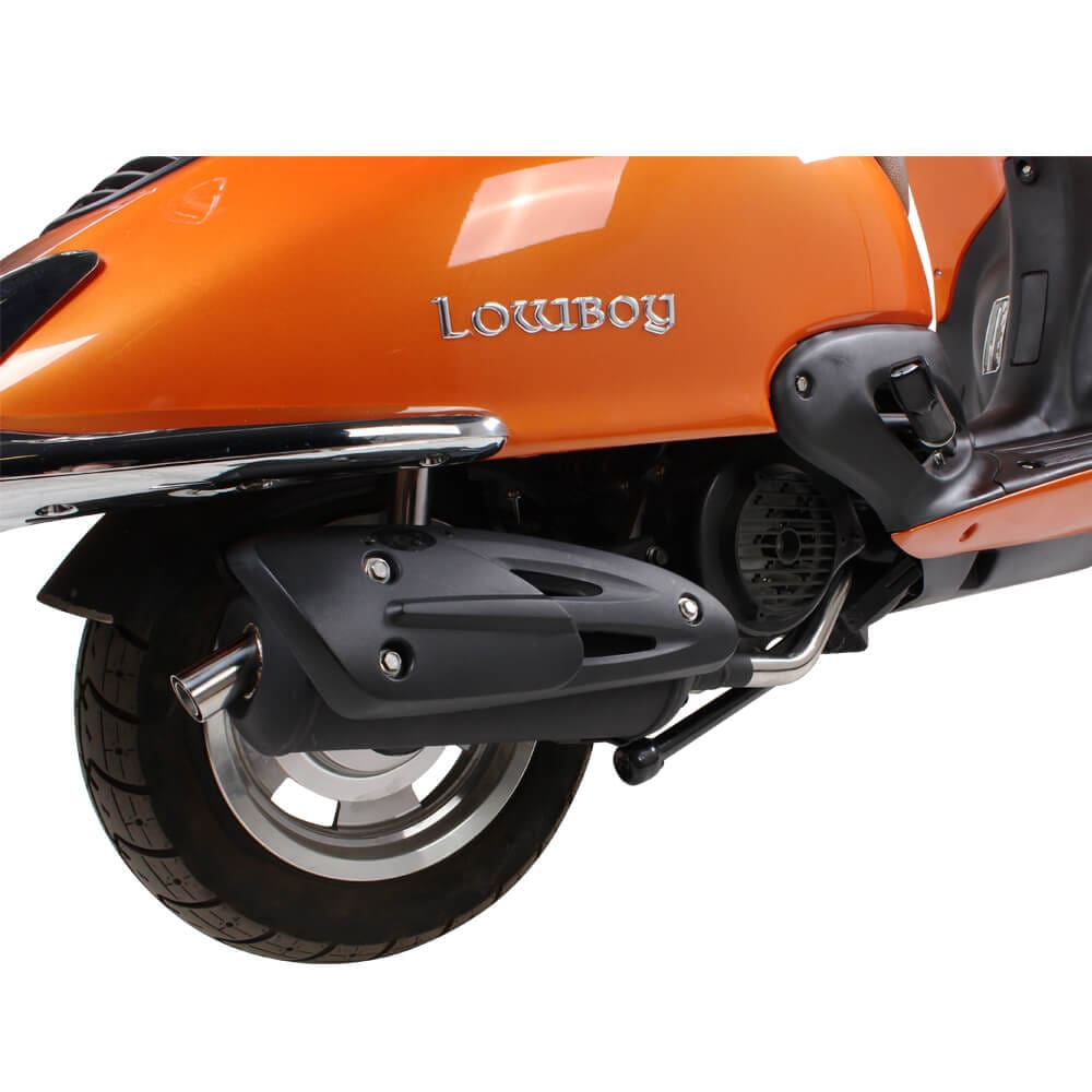 DESCRIPTION: This is a lower-mount road pipe, designed to fit vintage-styled Chinese scooters with low cowling (such as the “Cuxi” and “Bella” styled Chinese scooters) and 50cc 139QMB engines.Fits:Vintage-styled Chinese scooters with low cowling and 50cc 139QMB engines.