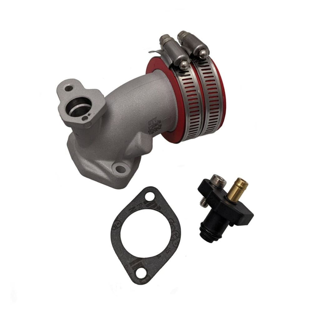 DESCRIPTION: Shin Yea performance intake manifold for Cygnus style heads, like the head found on the 232cc 4V power kit (see related items.) This intake works with both fuel injection or carburetors! CVK carbs from 24mm to 30mm or PWK carburetors up to 30mm can be used if the included vacuum fitting block off is installed. Includes gasket. An intake spacer is still required on most builds, please see related items for correct spacer. Bolt Hole Spacing: 50mm Inner Diameter (carb side): 35mm Inner Diameter (engine side): 32mm 1 Vacuum Point Will Not Fit Standard Style GY6 Heads Made in Taiwan! GY6 QMI/QMJ 152/157