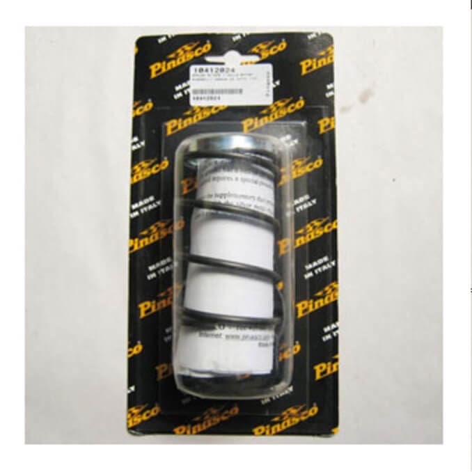 DESCRIPTION: Pinasco patented Spring Slider for variators. It is made up of an ultraflat axial bearing combined with a particular return spring: isolation of the return spring from the torsion of the driven pulleys lengthens the working life of the spring, thus notably improving performance and reliability. Fits ET2-engined scooters.