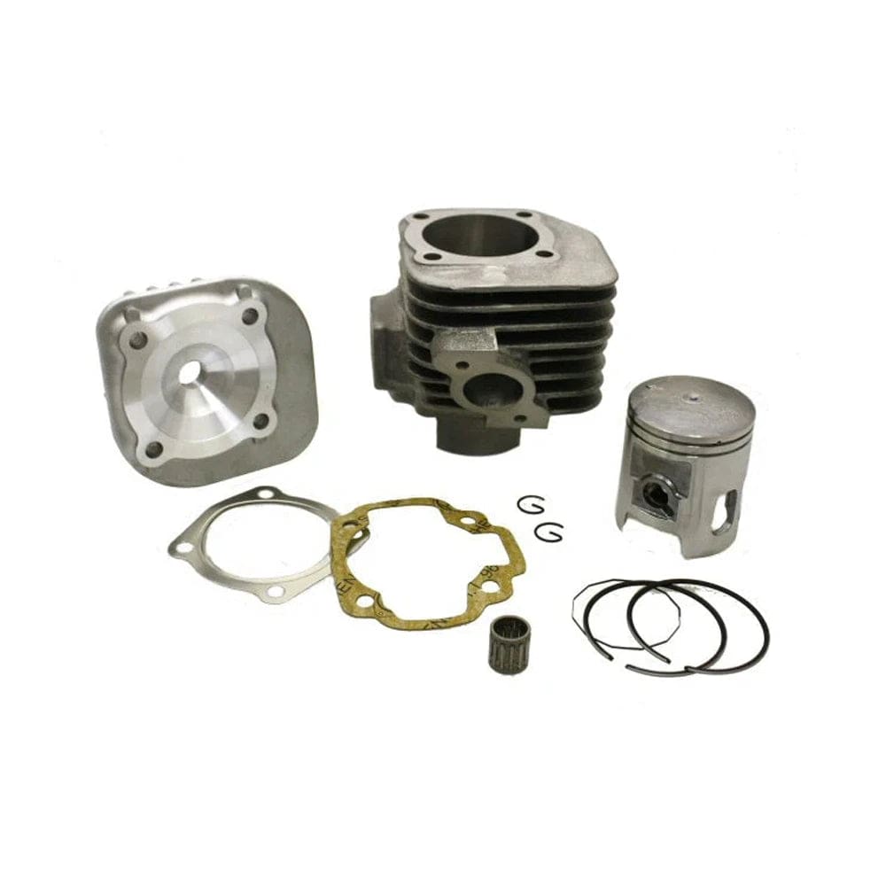 DESCRIPTION: SSP-G Big Bore Head Kit for 90cc 2-stroke 50QMF, E50QMF, 1E50QMF and 1PE50QMF Minarelli engines. 54mm with 12mm wrist pin, includes cylinder head Piston Diameter: 54mm Overall Height (cylinder): 102mm Wrist Pin Diameter: 12mm Wrist Pin Length: 40mm Diamo, Eton, Peugeot, TGB, Various unlisted makes/models, Yamaha