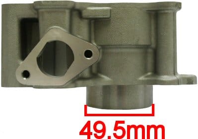 DESCRIPTION: SSP-G 47mm Big Bore Cylinder and Head Kit for the Yamaha Zuma 50F, C3 and Vino Classic 50cc 4 Stroke Liquid Cooled Scooters. Upgrades to 75.6cc! Includes cylinder, 3-Valve cylinder head, head gaskets, base gasket, piston, piston pin, piston rings and cir clips.Please note: A fuel pressure regulator or fuel injection tuner must be used with this cylinder kit. Upgrades to 75.6cc Displacement Bore: 47mm Overall Height (cylinder): 71.5mm Piston Pin Outer Diameter: 10mm Overall Piston Height: 30mm Piston Compression Height: 16mm Includes Extra Head Gasket 3 Valve Head Intake Valve Diameter: 15.5mm Exhaust Valve Diameter: 16.5mm