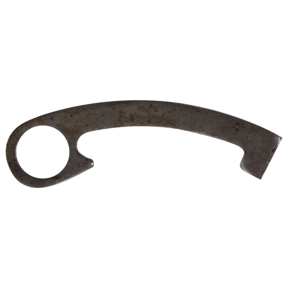 DESCRIPTION: This factory tool holds to one of the clutch bolts, then hooks into one of the slits in the clutch basket to hold it steady. A simple way to keep the crankshaft from rotating .Very handy when tightening the clutch and flywheel nuts! For all Vespa largeframes and Stella.