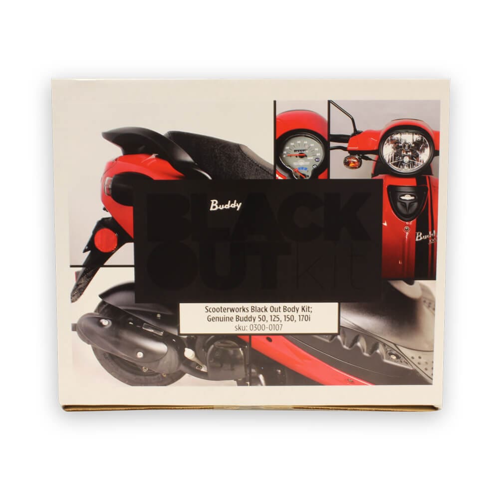NOTE: NOTE: The blackout kit for Buddy Kick 125 is available online. About Scooterworks: Since our beginning in 1989, Scooterworks has become a major supplier of parts and accessories for vintage and modern scooters. We have everything you need, from wear-and-tear items like tires and oil filters to aftermarket parts from brands like Malossi , NCY, Prima, YSS, Dr. Pulley, and more.