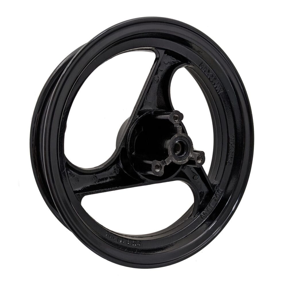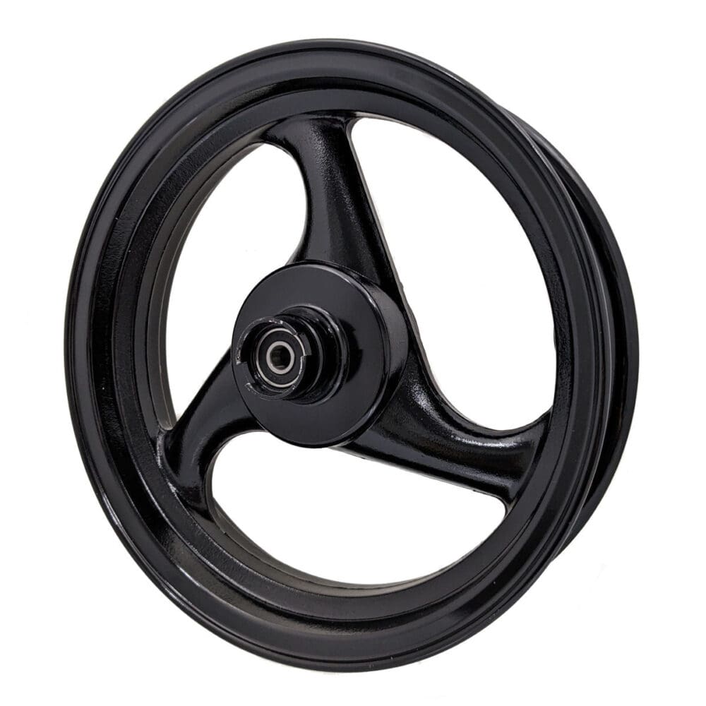 DESCRIPTION: Universal Parts 2.50×12″ front aluminum wheel for 50cc Scooters with disc brakes. Glossy black finish. Please see related items if you need the rear wheel also.