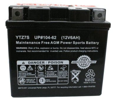 DESCRIPTION: Universal Parts 12 Volt 6 Amp YTZ7S Battery – Maintenance Free Dry AGM w/Acid Pack. Fits full-size scooters, mopeds, ATVs, dirt bikes, motorcycles, off-road vehicles and much more.Used on the Honda Ruckus and Metropolitan. Replaces the Following Models: 44025, GT6B-3, M727ZS, FAYTZ7S.**Note: This product is a ORM-D (Other Regulated Item, Domestic) regulated item and ships via FedEx Ground to the lower 48 states only. Length: 4.4 inches (112mm)