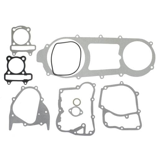 DESCRIPTION: Universal Parts Complete gasket set for the Long-Case GY6 150cc, 4-stroke engine. Long-Case Version Left CVT Cover Gasket Length: 17-7/8 inches, width at largest end is 6 1/2 inches including span of mounting holes 76mm Stud Spacing GY6 QMI/QMJ 152/157