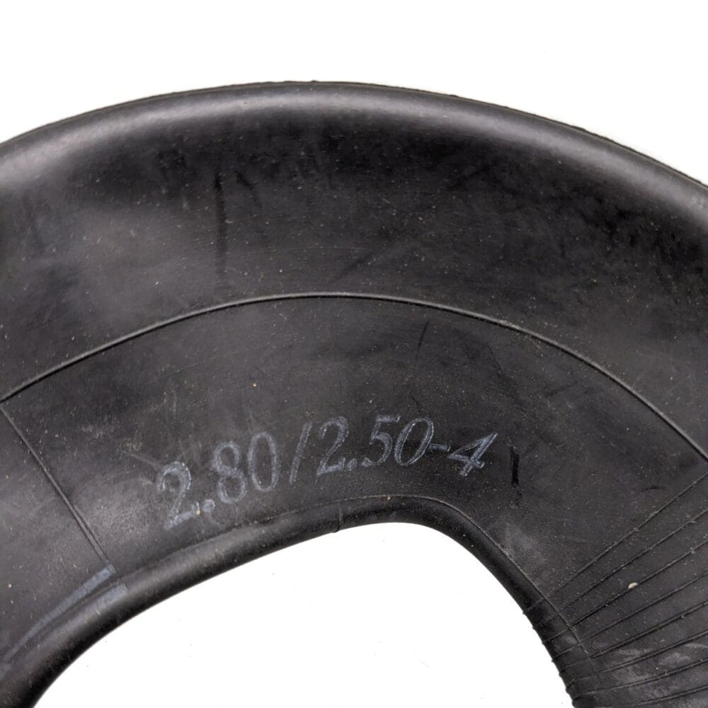DESCRIPTION: Universal Parts 2.80/2.50-4 Inner Tube For Electric Scooters. This tube can be used on 4 inch rims that also accept 9×3.5 and 3.00-4. 2.80/2.50-4 Bent Angle Valve Stem Universal FitE-300