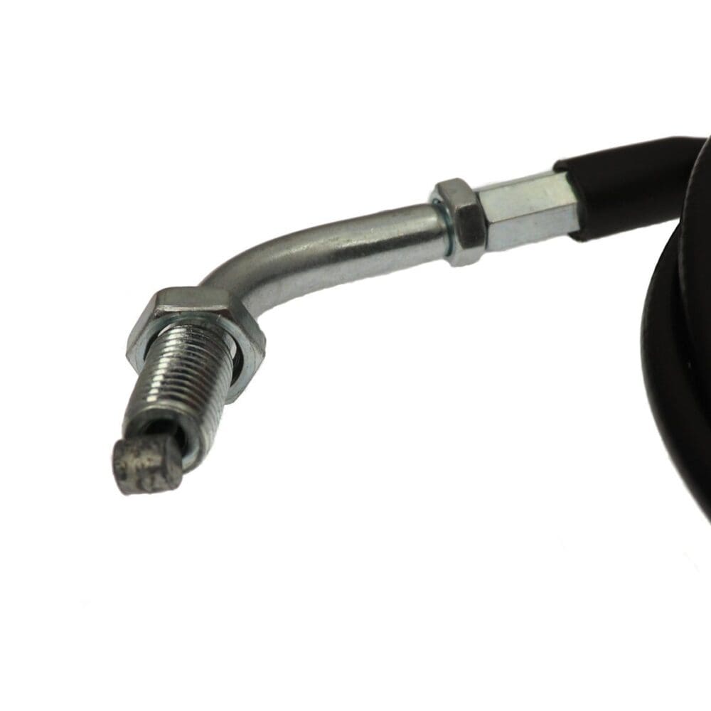 DESCRIPTION: Universal Parts Throttle cable with a 27″ sleeve, angle mount. Used on a large variety of 2 and 4-stroke Chinese vehicles such as pocket bikes, super-pocket bikes and mini-choppers. (Sleeve Length: 27″, Overall Length: 30″)Sleeve Length: 27 inchesOverall Length: 32 inches120° Elbow