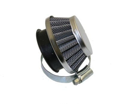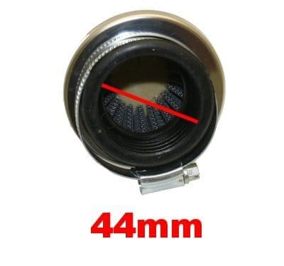 DESCRIPTION: Universal Parts Chrome, UFO style air filter. Fits 22-49cc 2-stroke engines. Inner Diameter: 44mm Overall Height: 47mm