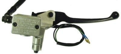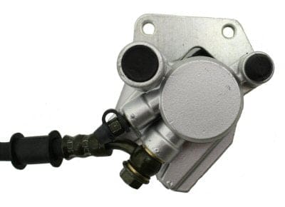DESCRIPTION: Universal Parts Front Hydraulic Brake Assembly for 150cc and 125cc GY6 engine based Sport Style scooters.Includes brake lever, master cylinder, caliper, hose, and brake pad. Brake Line: 39 inches Bolt Hole Spacing: 44mm Includes: Brake lever, master cylinder, caliper, hose and brake pads Fits 7/8 Handlebar No mirror mount Baja, JM Star Tomahawk II, Qingqi, Roketa, SUNL, Tank, Various unlisted makes/models, Vento, X-Treme