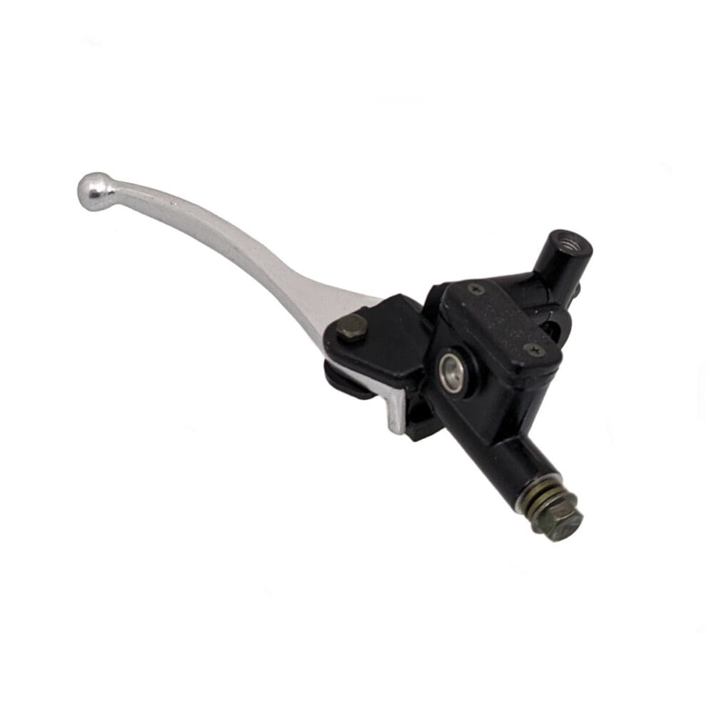 DESCRIPTION: Universal Parts front master cylinder for scooters, super pocket bikes and various other applications. Uses a 10mm banjo bolt. Includes Brake Switch Fits 7/8 Handlebar With Mirror Mount 10mm Banjo Bolt