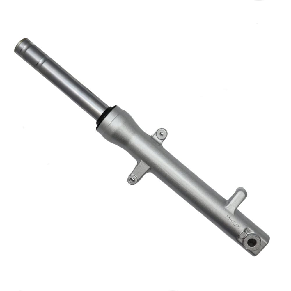 DESCRIPTION: Universal Parts left fork leg assembly for 125cc and 150cc GY6 engine based Sport Style scooters. Overall Length: 18.25 inches Fork Tube Outer Diameter: 30mm Axle Size: 12mm Baja, JM Star Tomahawk II, Qingqi, Roketa, SUNL, Tank, Various unlisted makes/models, Vento, X-Treme