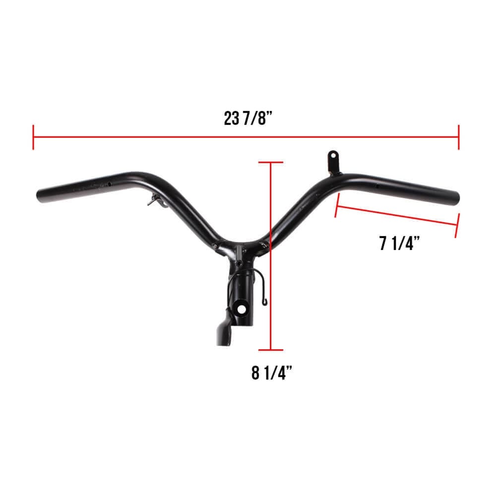 DESCRIPTION: These 7/8 handlebars replace original equipment on CSC go scooters and 139QMB Chinese bikes. See the compatibility table below to ensure this product fits your ride.Original Parts For Scooters SKU 134-8Specifications: Length (End to End): 23 7/8 in Length (End to Bend): 7 1/4 in Height: 8 1/4 in Inner Diameter of Stem: 24mm Handlebar Thickness: 7/8 Inch (22mm) Compatibility: CSC go scooters and those noted below139QMB-based 50cc / 80cc engines with the following engine codes: 139QMA 139QMB 1P39QMB 1P39QMA-2 YN139QMB JJ1P39QMB 139FMA-2 BD1P39QMB BN139QMB 147QMD Other QMA models Other QMB models Don’t see your engine listed? If the engine code includes QM or FM, this product is compatible with your vehicle.About CSC: Chicago Scooter Company embodies the spirit of urban mobility with its innovative and stylish lineup of scooters. Designed for city living, their scooters blend functionality, reliability, and modern design, making them the perfect choice for navigating busy streets. Experience the freedom of effortless commuting and explore the city in style with Chicago Scooter Company.nnSPECIFICATIONS: Length (End to End): 23 7/8 in Length (End to Bend): 7 1/4 in Height: 8 1/4 in Inner Diameter of Stem: 24mm Handlebar Thickness: 7/8 Inch (22mm)nnCOMPATIBILITY: CSC go scooters and those noted below139QMB-based 50cc / 80cc engines with the following engine codes: 139QMA 139QMB 1P39QMB 1P39QMA-2 YN139QMB JJ1P39QMB 139FMA-2 BD1P39QMB BN139QMB 147QMD Other QMA models Other QMB models Don’t see your engine listed? If the engine code includes “QM” or “FM”, this product is compatible with your vehicle.About CSC: Chicago Scooter Company embodies the spirit of urban mobility with its innovative and stylish lineup of scooters. Designed for city living, their scooters blend functionality, reliability, and modern design, making them the perfect choice for navigating busy streets. Experience the freedom of effortless commuting and explore the city in style with Chicago Scooter Company.nn139QMB ENGINES: 139QMB-based 50cc / 80cc engines with the following engine codes: 139QMA 139QMB 1P39QMB 1P39QMA-2 YN139QMB JJ1P39QMB 139FMA-2 BD1P39QMB BN139QMB 147QMD Other QMA models Other QMB models Don’t see your engine listed? If the engine code includes “QM” or “FM”, this product is compatible with your vehicle.About CSC: Chicago Scooter Company embodies the spirit of urban mobility with its innovative and stylish lineup of scooters. Designed for city living, their scooters blend functionality, reliability, and modern design, making them the perfect choice for navigating busy streets. Experience the freedom of effortless commuting and explore the city in style with Chicago Scooter Company.nnMODEL FITMENTS: Amstar, Amigo, Ascend, Baotian, Bashan, Blade, Boom, Chicago Scooter Company, Dongfang, Roketa, Baotian, Bashan, BMS, Cool Sports, E Ton, Fly Wing, Eagle, Fly, Italica, Riya, Ice Bear, Jackel, Jet Moto, JCL, Taotao, Peace, JM Star, Jonway, Kazuma, Keeway, KMD, Kymco, Lance, Lifan, Linhai, Loncin, Longbo, Fuxin, Jiajue, Tao Tao, Tao Motors, Trailmaster, Maxtrade, Meitien, Motofino, Motorino, NST, Panterra, Panther, Qlink, Yiben, Red Streak, Redcat, Roketa, Schwinn, Strada, SYM, Tank, Terminator ,Tomberlin, TNG, United Motors, Vento, Vitacci, Wildfire, Wolf, X-Treme, X-Pro, Yongfu, ZNEN, Zhongneng , Zhilong, Geely, Wangye, ZH and more Manufactured by: Taizhou Zhongneng Motorcycle Co.; Jiangsu Zhongneng Motorcycle Co.; Jiangsu Meijunte Technology Co.; Taizhou Qianxin Vehicle Co.; Ningbo Dongfang Lingyun Vehicle Made Co.; Taizhou Zhilong Technology Co.; Zhejiang Jiajue Motorcycle Manufacturing Co.; Zhejiang Gelly Ming Industrial Co.; Taizhou City Senglong Motorcycle Manufacture Co.; Jiangsu Sacin Motorcycle Co.; Jiangsu Linhai Power Machinery Group Co.; Zheijiang TaoTao Vehicles Co.; Zhejiang Senling Motorcycle Co.; Sanmen County Yongfu Machine Co; Taizhou Jiaojiang Zhiwei Motorcycle Manufacture Co.; Huzhou Daixi Zhenhua Technology Trade Co.; Taizhou Zhongneng Motorcycle Co.; Zhejiang Riya Motorcycle Co.; Ningbo Longjia Motorcycle Co.; Taizhou Zhongneng Motorcycle Co.; and more
