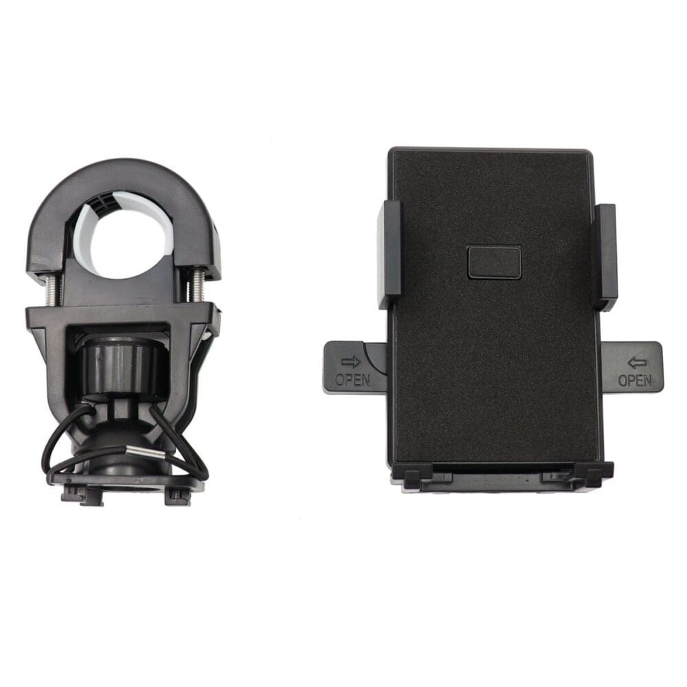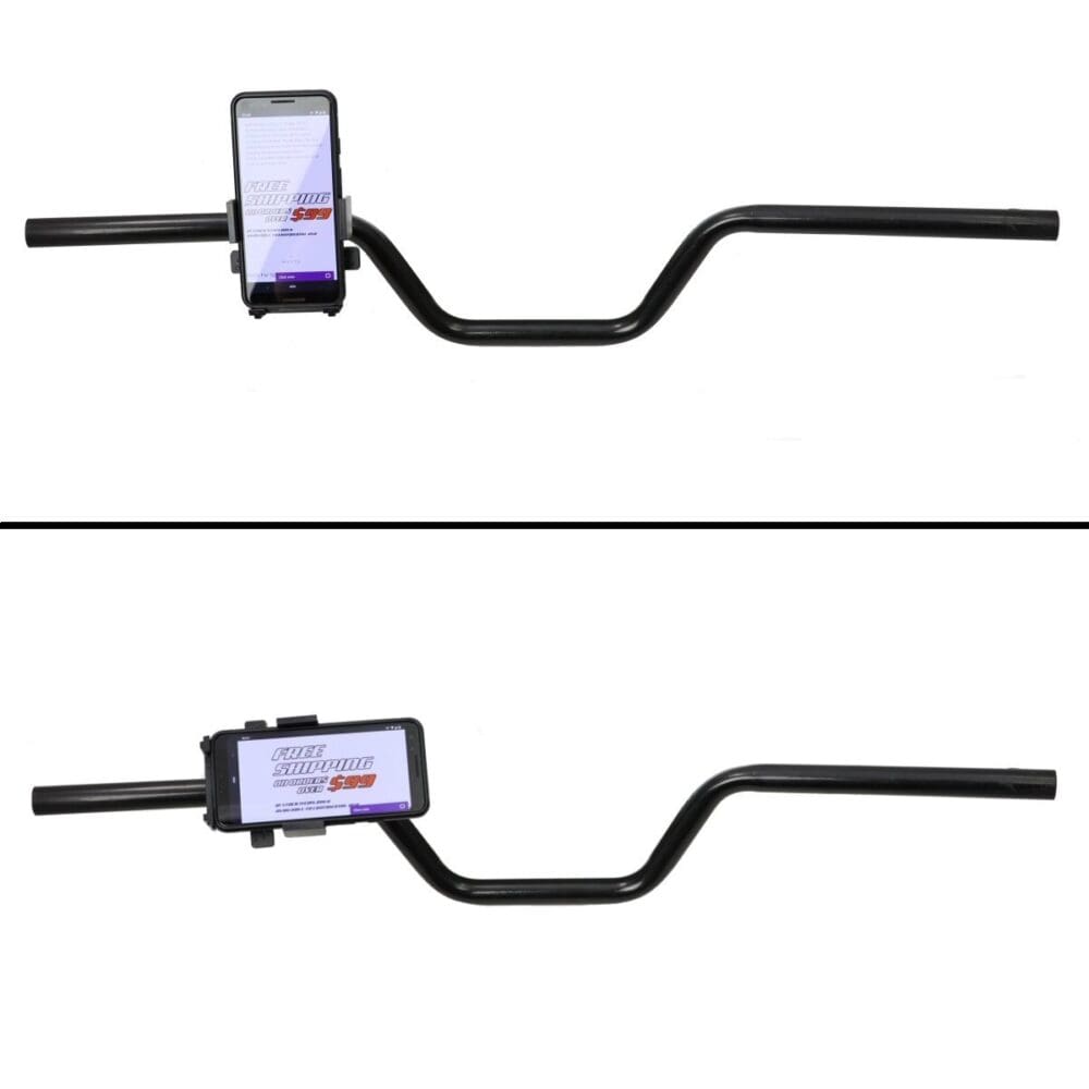 DESCRIPTION: Universal Parts handlebar mounted phone holder holds most mobile phones from 2.5 (63.5mm) up to 3.5 (90mm) wide. The clamp is adjustable for standard 7/8 bars and oversized 1 handlebars and the mount can be rotated for horizontal or vertical viewing. Cell Phone Width Range: Approximately 2.5 to 3.5 Cell Phone Thickness : Approximately 14mm (9/16) Fits 7/8 and 1 Handlebars Includes Mounting Hardware, Instructions (on box) and Elastic Band For Added Security Handlebars Not Included Most Makes/ Models