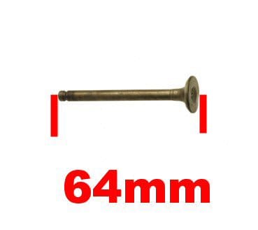 DESCRIPTION: Universal Parts 64mm Exhaust Valve for 50cc 4-stroke QMB139 engines. Valve Diameter: 16mm Shaft Diameter: 5mm Overall length: 64mm QMB139 50cc/49cc , Various unlisted makes/models