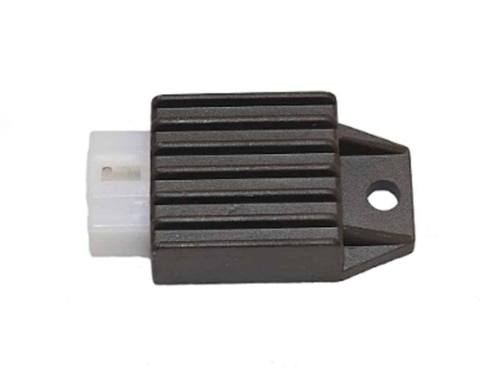 DESCRIPTION: This regulator (rectifier) replaces the original equipment on your CSC go, go MAX, Genuine Buddy and RoughHouse scooters, as well as GY6 and 139QMB bikes.Original Parts For Scooters SKU 100-172, SKU 151-67Specifications: Plug style: 4-pin, male No pigtail Plastic connector color may vary from the product photo Compatibility: Chicago Scooter Company go Chicago Scooter Company go MAX Genuine Buddy scooters Genuine RoughHouse scooters 139QMB-based 50cc / 80cc engines with the following engine codes: 139QMA 139QMB 1P39QMB 1P39QMA-2 YN139QMB JJ1P39QMB 139FMA-2 BD1P39QMB BN139QMB 147QMD Other QMA models Other QMB models 157QMJ-based 125cc / 150cc / 169cc engines with the following engine codes: 157QMJ 161QMK 152QMI 1P61QMK YN1P57QMJ 1P52FMI 154FMI JJ157QMJ 1P57QMJ BN157QMJ BN161QMK-A Other QMJ, QMK, and QMI models Don’t see your engine listed? If the engine code includes QM or FM, this product is compatible with your vehicle.nnSPECIFICATIONS: Plug style: 4-pin, male No pigtail Plastic connector color may vary from the product photonnCOMPATIBILITY: Chicago Scooter Company go Chicago Scooter Company go MAX Genuine Buddy scooters Genuine RoughHouse scooters 139QMB-based 50cc / 80cc engines with the following engine codes: 139QMA 139QMB 1P39QMB 1P39QMA-2 YN139QMB JJ1P39QMB 139FMA-2 BD1P39QMB BN139QMB 147QMD Other QMA models Other QMB models 157QMJ-based 125cc / 150cc / 169cc engines with the following engine codes: 157QMJ 161QMK 152QMI 1P61QMK YN1P57QMJ 1P52FMI 154FMI JJ157QMJ 1P57QMJ BN157QMJ BN161QMK-A Other QMJ, QMK, and QMI models Don’t see your engine listed? If the engine code includes “QM” or “FM”, this product is compatible with your vehicle.nn157QMJ ENGINES: 157QMJ-based 125cc / 150cc / 169cc engines with the following engine codes: 157QMJ 161QMK 152QMI 1P61QMK YN1P57QMJ 1P52FMI 154FMI JJ157QMJ 1P57QMJ BN157QMJ BN161QMK-A Other QMJ, QMK, and QMI models Don’t see your engine listed? If the engine code includes “QM” or “FM”, this product is compatible with your vehicle.nn139QMB ENGINES: 139QMB-based 50cc / 80cc engines with the following engine codes: 139QMA 139QMB 1P39QMB 1P39QMA-2 YN139QMB JJ1P39QMB 139FMA-2 BD1P39QMB BN139QMB 147QMD Other QMA models Other QMB modelsnnMODEL FITMENTS: Amstar, Amigo, Ascend, Baotian, Bashan, Blade, Boom, Chicago Scooter Company, Dongfang, Roketa, Baotian, Bashan, BMS, Cool Sports, E Ton, Fly Wing, Eagle, Fly, Italica, Riya, Ice Bear, Jackel, Jet Moto, JCL, Taotao, Peace, JM Star, Jonway, Kazuma, Keeway, KMD, Kymco, Lance, Lifan, Linhai, Loncin, Longbo, Fuxin, Jiajue, Tao Tao, Tao Motors, Trailmaster, Maxtrade, Meitien, Motofino, Motorino, NST, Panterra, Panther, Qlink, Yiben, Red Streak, Redcat, Roketa, Schwinn, Strada, SYM, Tank, Terminator ,Tomberlin, TNG, United Motors, Vento, Vitacci, Wildfire, Wolf, X-Treme, X-Pro, Yongfu, ZNEN, Zhongneng , Zhilong, Geely, Wangye, ZH and more Manufactured by: Taizhou Zhongneng Motorcycle Co.; Jiangsu Zhongneng Motorcycle Co.; Jiangsu Meijunte Technology Co.; Taizhou Qianxin Vehicle Co.; Ningbo Dongfang Lingyun Vehicle Made Co.; Taizhou Zhilong Technology Co.; Zhejiang Jiajue Motorcycle Manufacturing Co.; Zhejiang Gelly Ming Industrial Co.; Taizhou City Senglong Motorcycle Manufacture Co.; Jiangsu Sacin Motorcycle Co.; Jiangsu Linhai Power Machinery Group Co.; Zheijiang TaoTao Vehicles Co.; Zhejiang Senling Motorcycle Co.; Sanmen County Yongfu Machine Co; Taizhou Jiaojiang Zhiwei Motorcycle Manufacture Co.; Huzhou Daixi Zhenhua Technology Trade Co.; Taizhou Zhongneng Motorcycle Co.; Zhejiang Riya Motorcycle Co.; Ningbo Longjia Motorcycle Co.; Taizhou Zhongneng Motorcycle Co.; and more