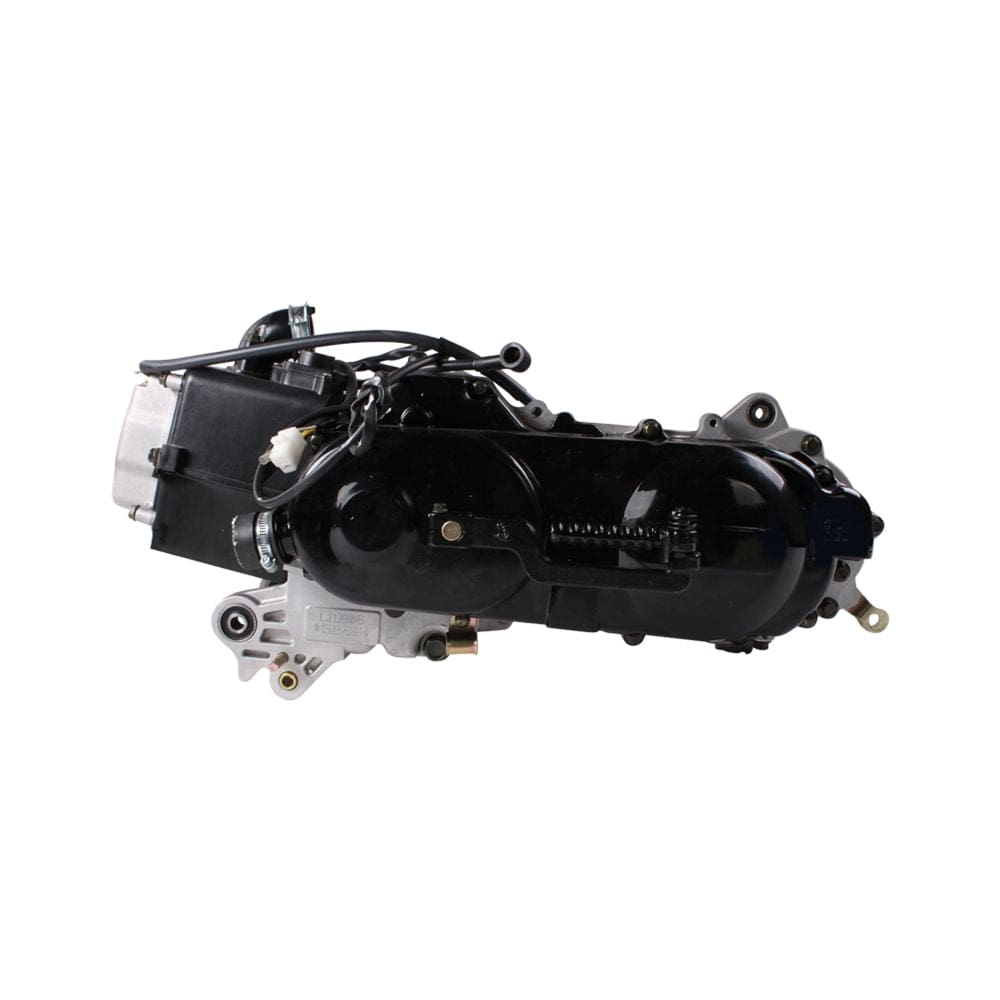 DESCRIPTION: Complete 4-stroke 50cc engine for CSC go, go MAX, Bella Classic, Nitro Sport, Pug 50, and other 50cc 139QMB gas scooter engines with automatic CVT transmission and rear drum brakes. Includes electric starter, kick start, and CVT. Brake shoes not included.This scooter engine is designed specifically for use with 10 diameter rear rims. This corresponds to a tire size of 2.75-10 through 3.50-10. Please be sure your rear tire diameter falls within the range of these sizes.This engine is shipped dry and includes 1 Liter of Bel-Ray Gear Saver Hypoid Oil and 1 Liter of Bel-Ray Engine Oil. DO NOT RUN ENGINE WITHOUT ADDING SPECIFIED AMOUNTS OF OIL.Original Parts For Scooters SKU 220-40Specifications: Output Shaft Length: 54mm CVT Cover (short case): 16 inches Set up for drum brake Set Up for PAIR Emissions System 69mm Valves 8 Pole A/C Stator Includes Premium Bando Drive Belt and NGK Spark Plug Engine Oil: 0.8 Liters Gear Oil: 0.12 Liters (filling) and 0.10 Liters (changing) Engine type: Single Cylinder 4-Stroke Cooling: Air Cooled Displacement: 49cc Bore Stroke(mm): 39 X 41.5 Max Power (kw/rpm): 2.3/7500 Max Torque (N-m/rpm): 3.2/6500 Min Unload Stable Rotation (rpm): 1600 +/- 100 Starting: Electric/kick Compatibility: CSC Bella Classic 50 CSC Nitro Sport 50 CSC Pug 50 CSC go CSC go MAX 139QMB-based 50cc / 80cc engines with the following engine codes: 139QMA 139QMB 1P39QMB 1P39QMA-2 YN139QMB JJ1P39QMB 139FMA-2 BD1P39QMB BN139QMB 147QMD Other QMA models Other QMB models Don’t see your engine listed? If the engine code includes QM or FM, this product is compatible with your vehicle.Please choose carefully! Scooterworks now has a firm no return policy on engines, barring manufacture defects or shipping damage.Product is intended as OEM equivalent for listed models. Any misuse, alteration or alternative application is prohibited by law.This product is not available for international or expedited shipping and will ship only via U.S. domestic ground. This product can only be shipped to the contiguous United States (lower 48 states and D.C.). International orders and orders bound for Alaska, Hawaii, or Puerto Rico for this item will be canceled.nnSPECIFICATIONS: Output Shaft Length: 54mm CVT Cover (short case): 16 inches Set up for drum brake Set Up for PAIR Emissions System 69mm Valves 8 Pole A/C Stator Includes Premium Bando Drive Belt and NGK Spark Plug Engine Oil: 0.8 Liters Gear Oil: 0.12 Liters (filling) and 0.10 Liters (changing) Engine type: Single Cylinder 4-Stroke Cooling: Air Cooled Displacement: 49cc Bore Stroke(mm): 39 X 41.5 Max Power (kw/rpm): 2.3/7500 Max Torque (N-m/rpm): 3.2/6500 Min Unload Stable Rotation (rpm): 1600 +/- 100 Starting: Electric/kicknnCOMPATIBILITY: CSC Bella Classic 50 CSC Nitro Sport 50 CSC Pug 50 CSC go CSC go MAX 139QMB-based 50cc / 80cc engines with the following engine codes: 139QMA 139QMB 1P39QMB 1P39QMA-2 YN139QMB JJ1P39QMB 139FMA-2 BD1P39QMB BN139QMB 147QMD Other QMA models Other QMB models Don’t see your engine listed? If the engine code includes “QM” or “FM”, this product is compatible with your vehicle.Please choose carefully! Scooterworks now has a firm no return policy on engines, barring manufacture defects or shipping damage.Product is intended as OEM equivalent for listed models. Any misuse, alteration or alternative application is prohibited by law.This product is not available for international or expedited shipping and will ship only via U.S. domestic ground. This product can only be shipped to the contiguous United States (lower 48 states and D.C.). International orders and orders bound for Alaska, Hawaii, or Puerto Rico for this item will be canceled.nn139QMB ENGINES: 139QMB-based 50cc / 80cc engines with the following engine codes: 139QMA 139QMB 1P39QMB 1P39QMA-2 YN139QMB JJ1P39QMB 139FMA-2 BD1P39QMB BN139QMB 147QMD Other QMA models Other QMB models Don’t see your engine listed? If the engine code includes “QM” or “FM”, this product is compatible with your vehicle.Please choose carefully! Scooterworks now has a firm no return policy on engines, barring manufacture defects or shipping damage.Product is intended as OEM equivalent for listed models. Any misuse, alteration or alternative application is prohibited by law.This product is not available for international or expedited shipping and will ship only via U.S. domestic ground. This product can only be shipped to the contiguous United States (lower 48 states and D.C.). International orders and orders bound for Alaska, Hawaii, or Puerto Rico for this item will be canceled.nnMODEL FITMENTS: Amstar, Amigo, Ascend, Baotian, Bashan, Blade, Boom, Chicago Scooter Company, Dongfang, Roketa, Baotian, Bashan, BMS, Cool Sports, E Ton, Fly Wing, Eagle, Fly, Italica, Riya, Ice Bear, Jackel, Jet Moto, JCL, Taotao, Peace, JM Star, Jonway, Kazuma, Keeway, KMD, Kymco, Lance, Lifan, Linhai, Loncin, Longbo, Fuxin, Jiajue, Tao Tao, Tao Motors, Trailmaster, Maxtrade, Meitien, Motofino, Motorino, NST, Panterra, Panther, Qlink, Yiben, Red Streak, Redcat, Roketa, Schwinn, Strada, SYM, Tank, Terminator ,Tomberlin, TNG, United Motors, Vento, Vitacci, Wildfire, Wolf, X-Treme, X-Pro, Yongfu, ZNEN, Zhongneng , Zhilong, Geely, Wangye, ZH and more Manufactured by: Taizhou Zhongneng Motorcycle Co.; Jiangsu Zhongneng Motorcycle Co.; Jiangsu Meijunte Technology Co.; Taizhou Qianxin Vehicle Co.; Ningbo Dongfang Lingyun Vehicle Made Co.; Taizhou Zhilong Technology Co.; Zhejiang Jiajue Motorcycle Manufacturing Co.; Zhejiang Gelly Ming Industrial Co.; Taizhou City Senglong Motorcycle Manufacture Co.; Jiangsu Sacin Motorcycle Co.; Jiangsu Linhai Power Machinery Group Co.; Zheijiang TaoTao Vehicles Co.; Zhejiang Senling Motorcycle Co.; Sanmen County Yongfu Machine Co; Taizhou Jiaojiang Zhiwei Motorcycle Manufacture Co.; Huzhou Daixi Zhenhua Technology Trade Co.; Taizhou Zhongneng Motorcycle Co.; Zhejiang Riya Motorcycle Co.; Ningbo Longjia Motorcycle Co.; Taizhou Zhongneng Motorcycle Co.; and more