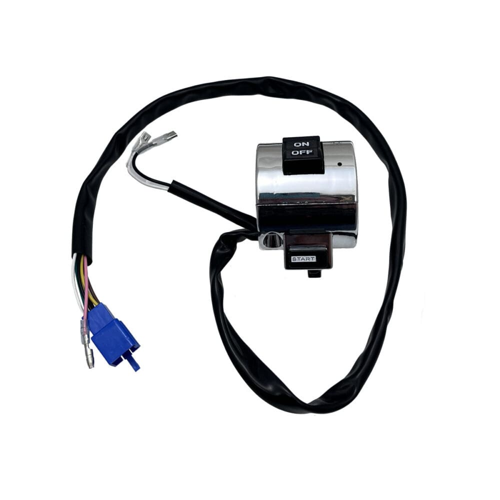 DESCRIPTION: Universal Parts Right Handle Switch commonly found on Retro Style Full-Size Street Scooters using 1 (25mm) handlebars. Switch has 6 pins in the plastic connector, a single bullet connector, and two spade connectors. Fits Retro style scooters from ZNEN, BMS, Lance, Taotao, Roketa, JMStar, SUNL, Jonway, and more! Wire Length: 26 inches Plug Style: 6-pin male, single bullet connector and 2 spade connectors Inner Diameter: 25mm (1 Inch) Mirror Mount Thread Size: M10x1.25