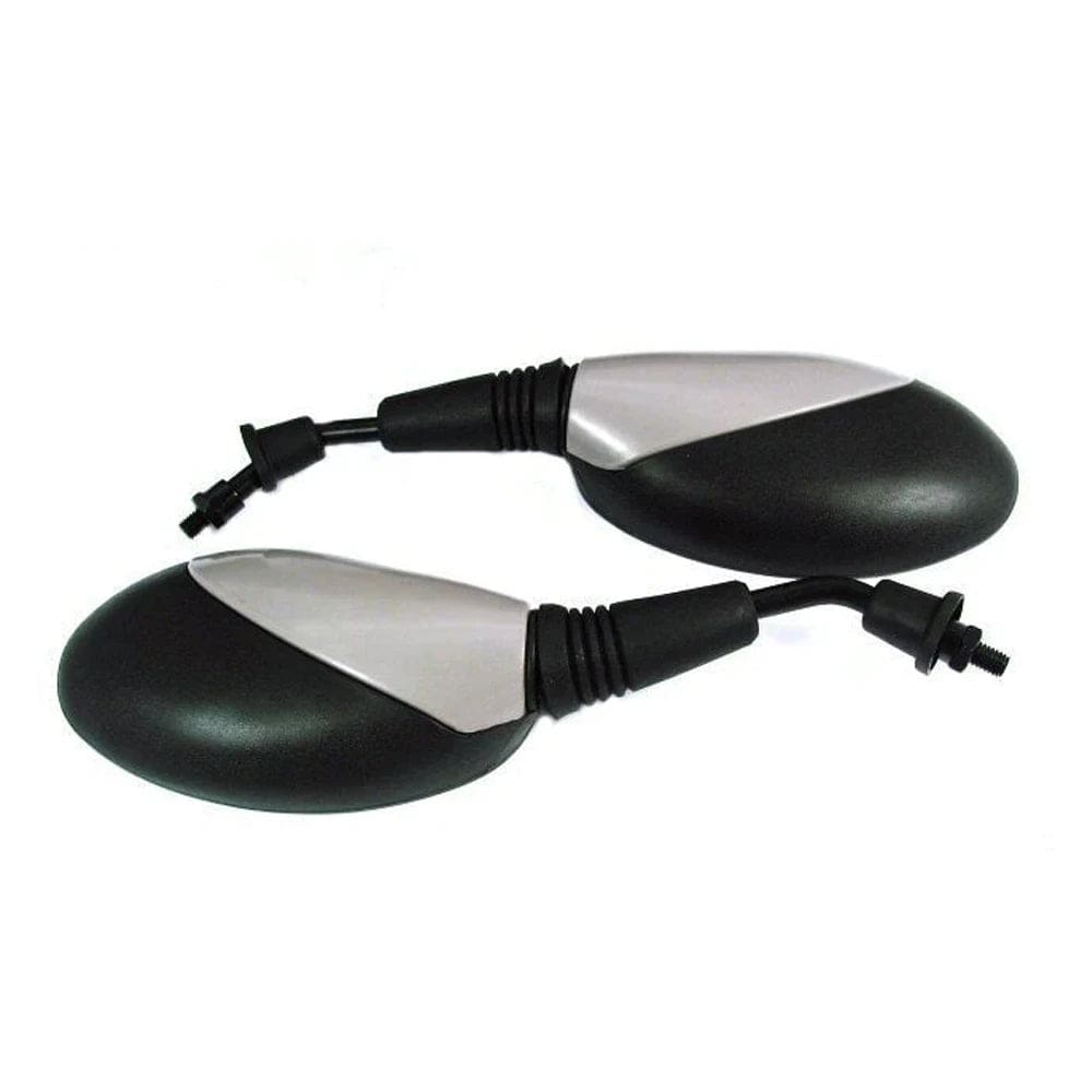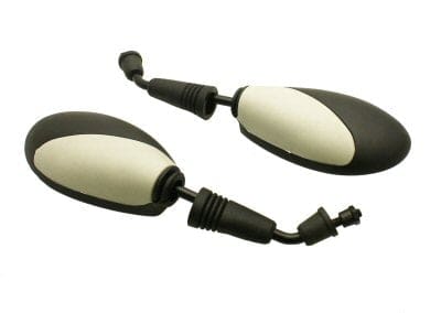 DESCRIPTION: Universal Parts Black/grey mirror set for full-size scooters. Thread Size: M8x1.25 Right-Hand Thread