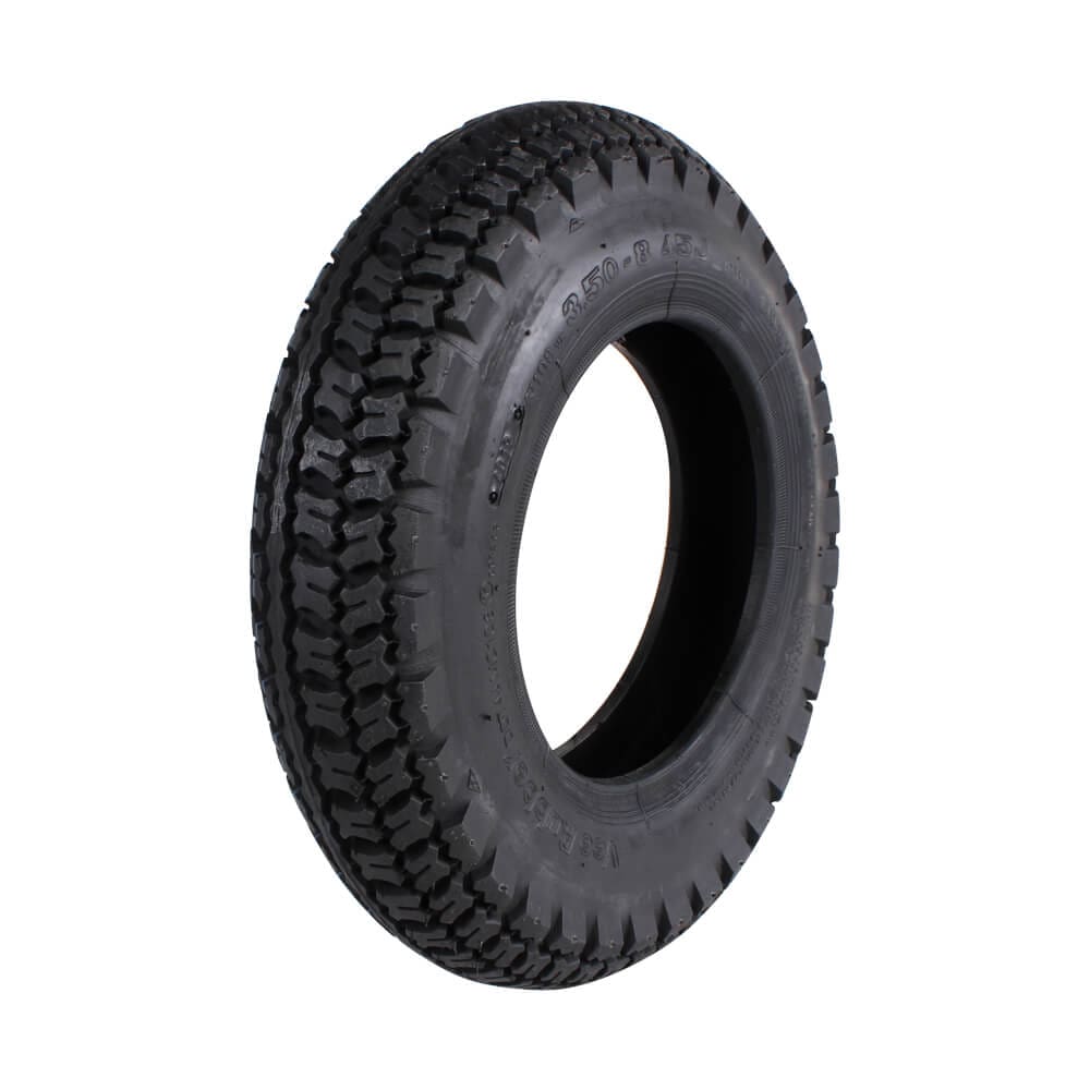 DESCRIPTION: High quality Vee Rubber TUBE TYPE All Purpose Tire (3.5 – 8) with speed rating J (62 mph)VRM 108Vee Rubber tires are extremely high quality tires at a very reasonable price.Vee Rubber was formed in 1977 as a manufacturer of bicycle and motorcycle tires and tubes. Its sales quickly spread throughout Asia, Western Europe, Canada, Latin America, and other corners of the world. Vee Rubber has invested $100 million in manufacturing and has 10 branches throughout the world employing 4000 people.Vee Rubber is ISO 9000 certified and is an OEM supplier to many 2 wheel companies all over the world.
